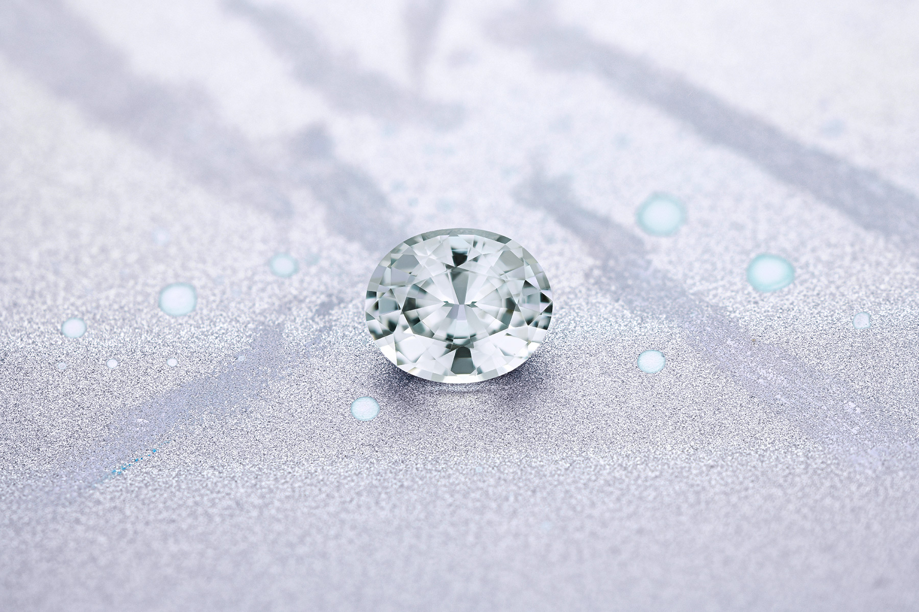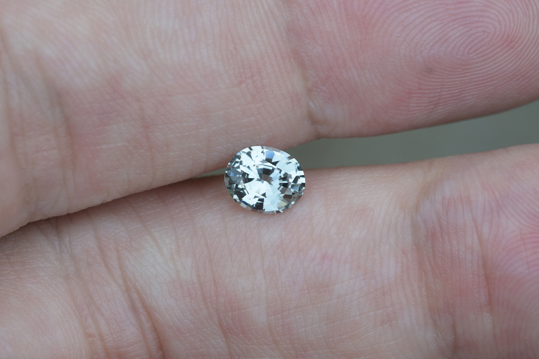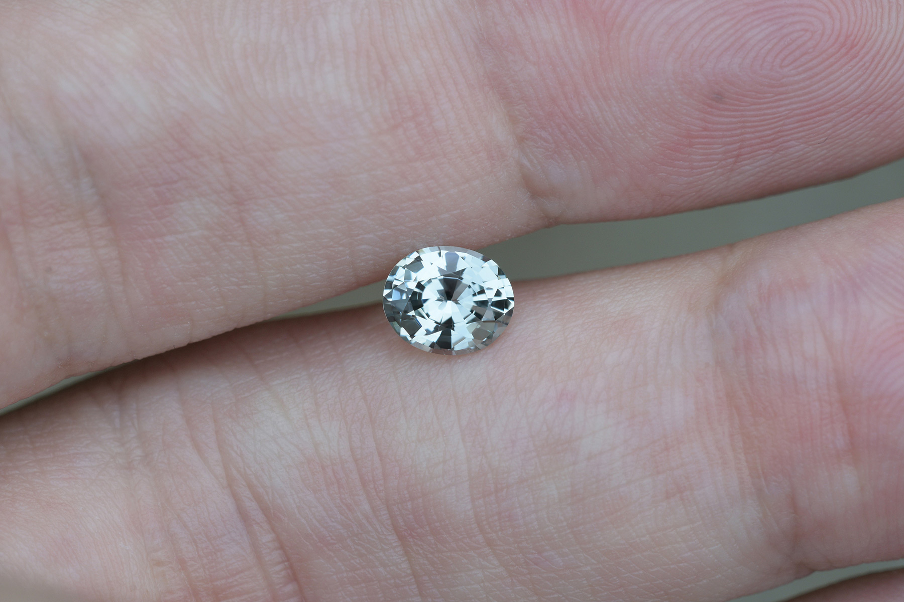 A light, sparkly and well cut oval sapphire with a slight seafoam tint.