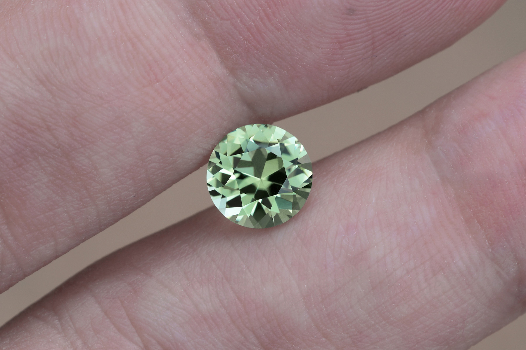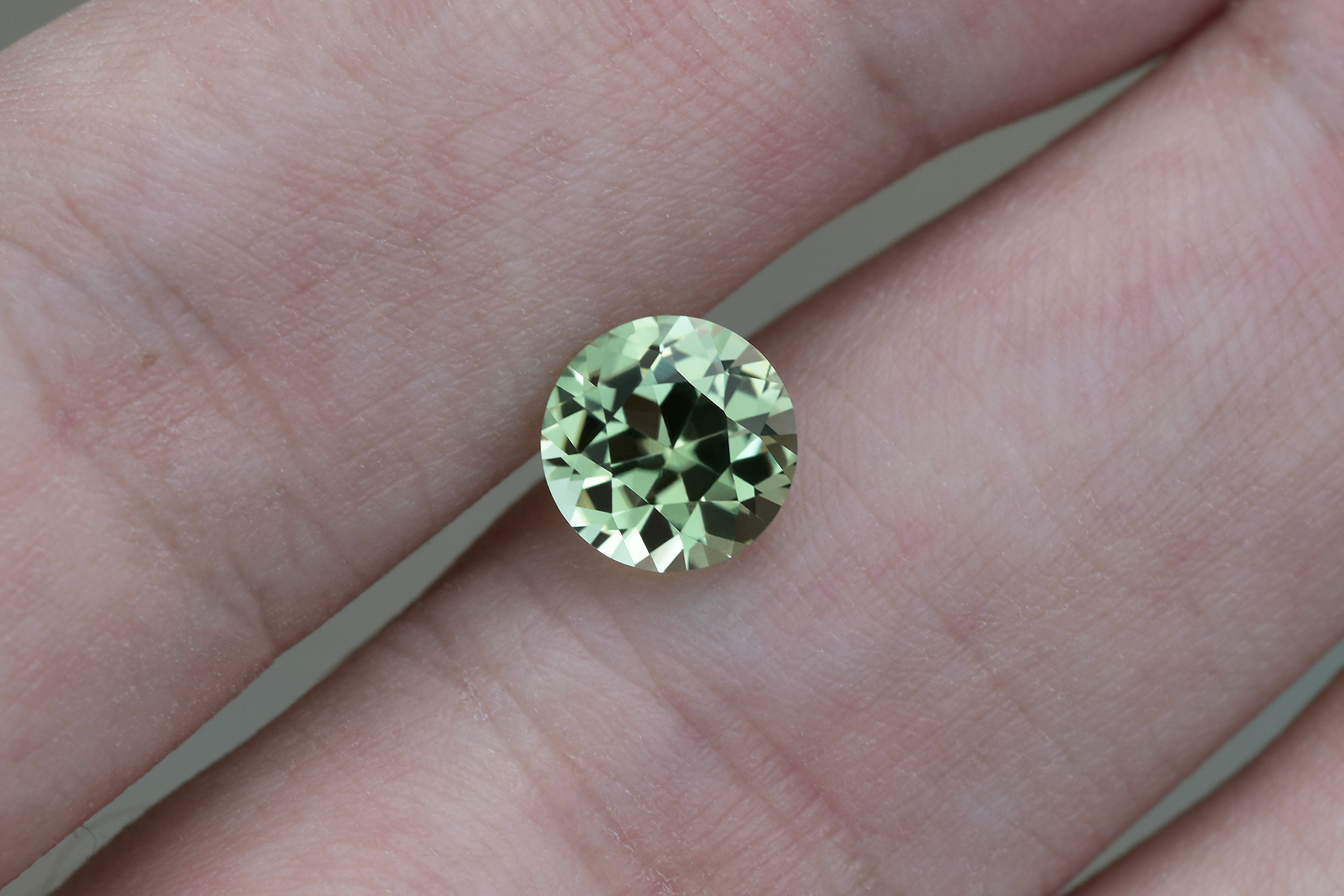 This stone's pleasant color shifts from a slightly bluish green to a more yellowish green depending on the environment and the light type.