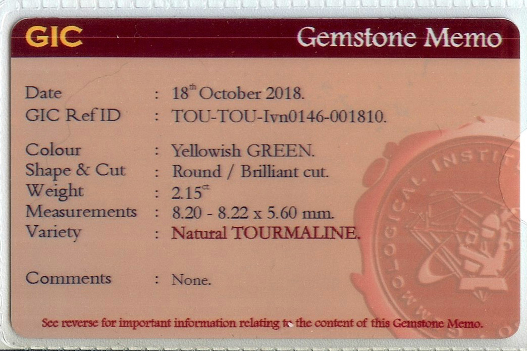 A card/brief format lab report is included with the stone