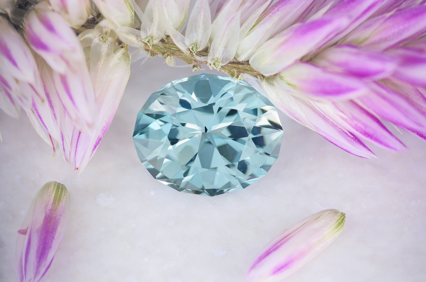 An icy aquamarine – pristine looking and sparkly.