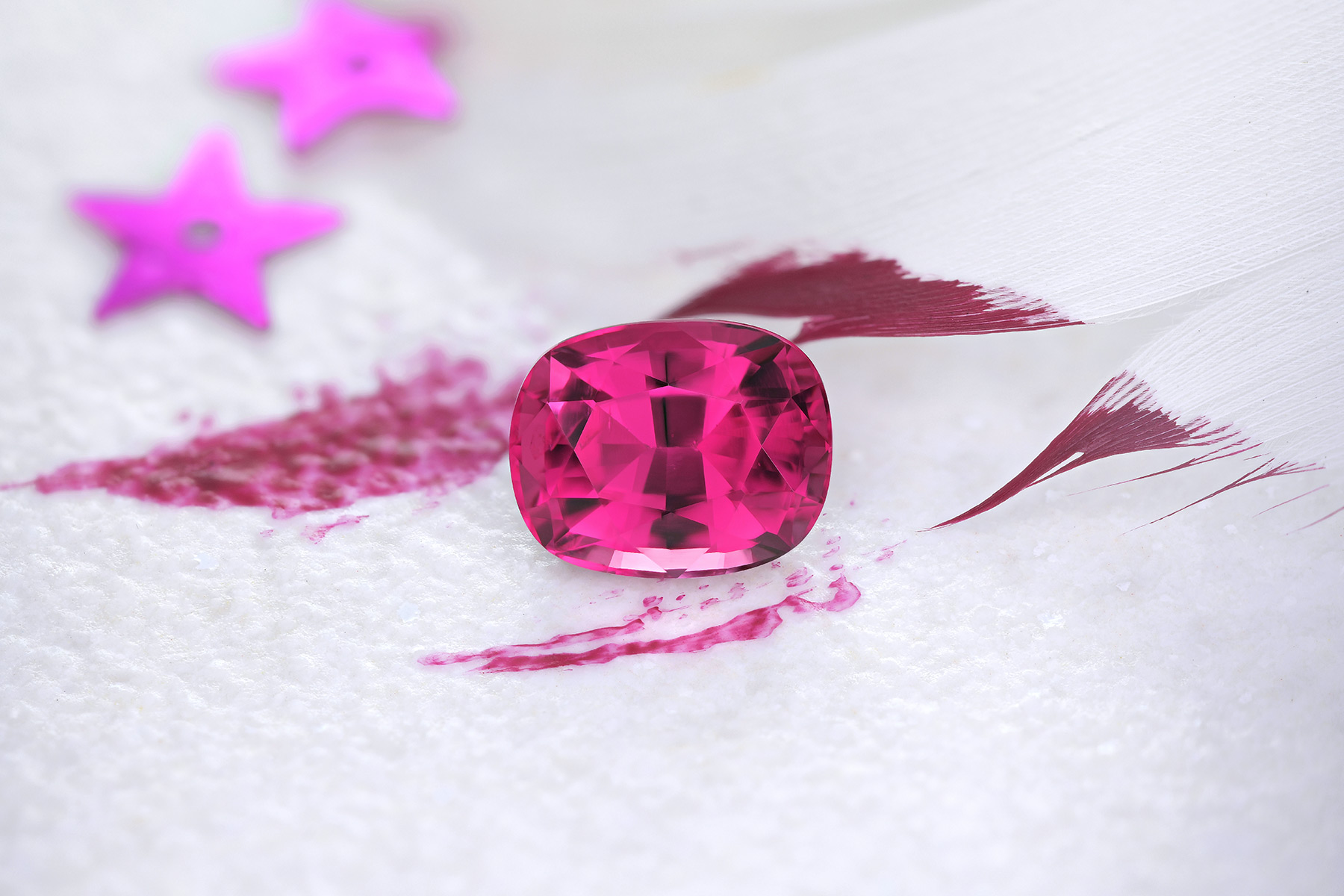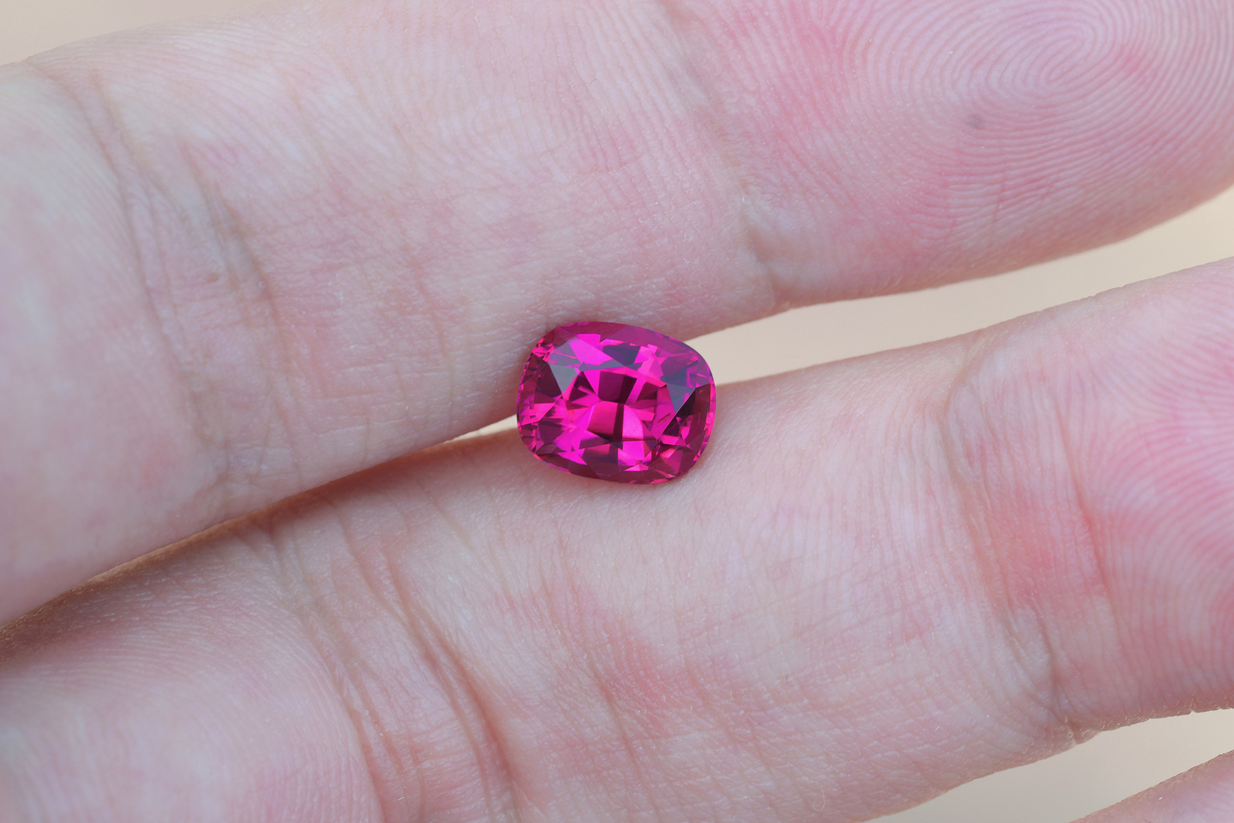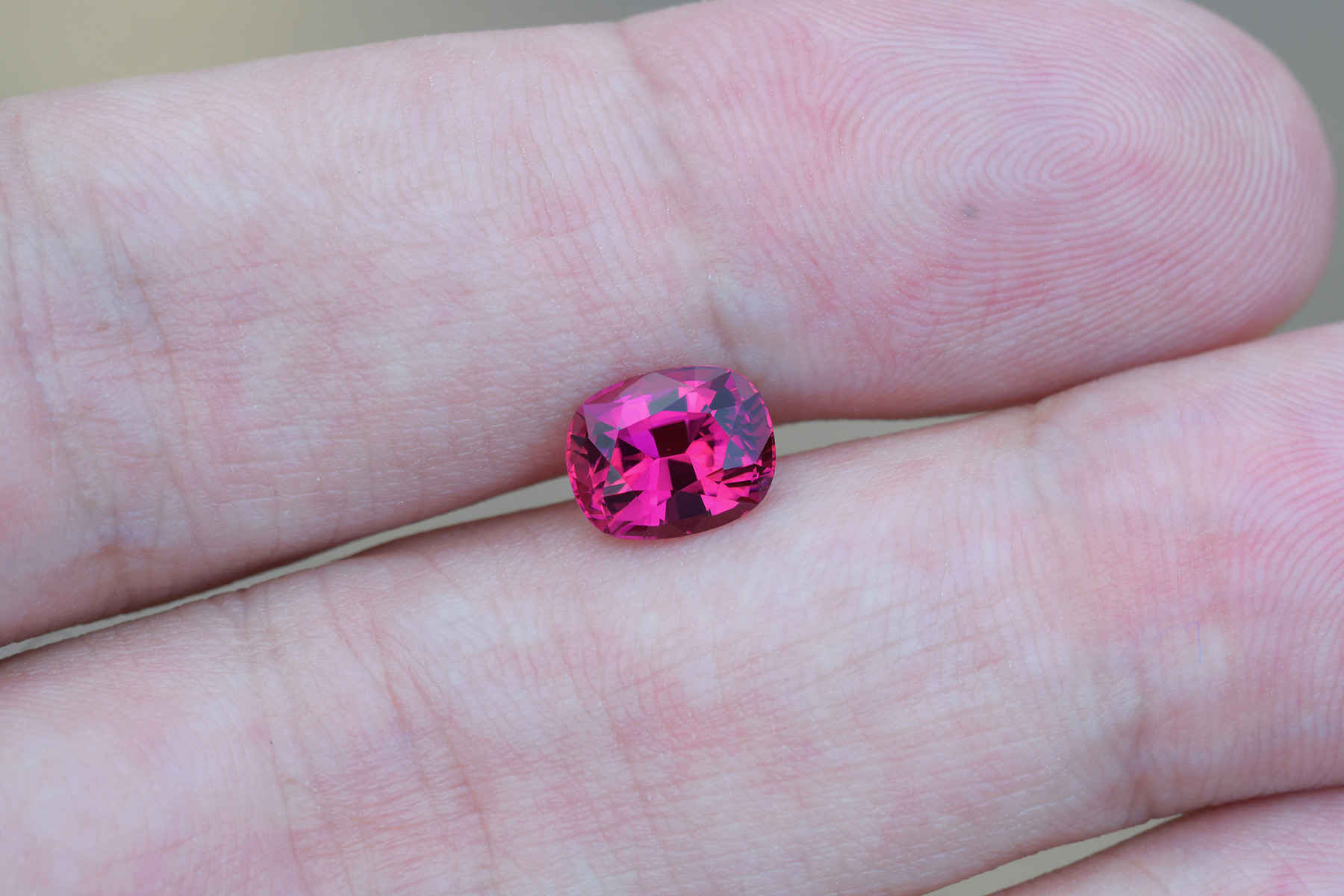 A vivid, warm and glowy pink-magenta tourmaline in a classic rectangular/antique cushion.