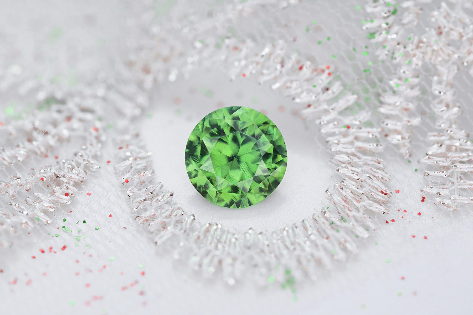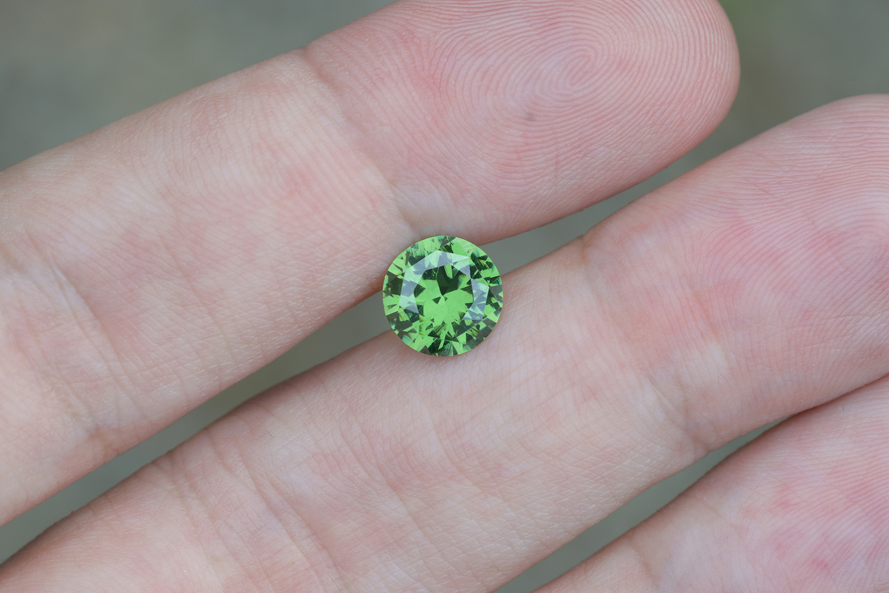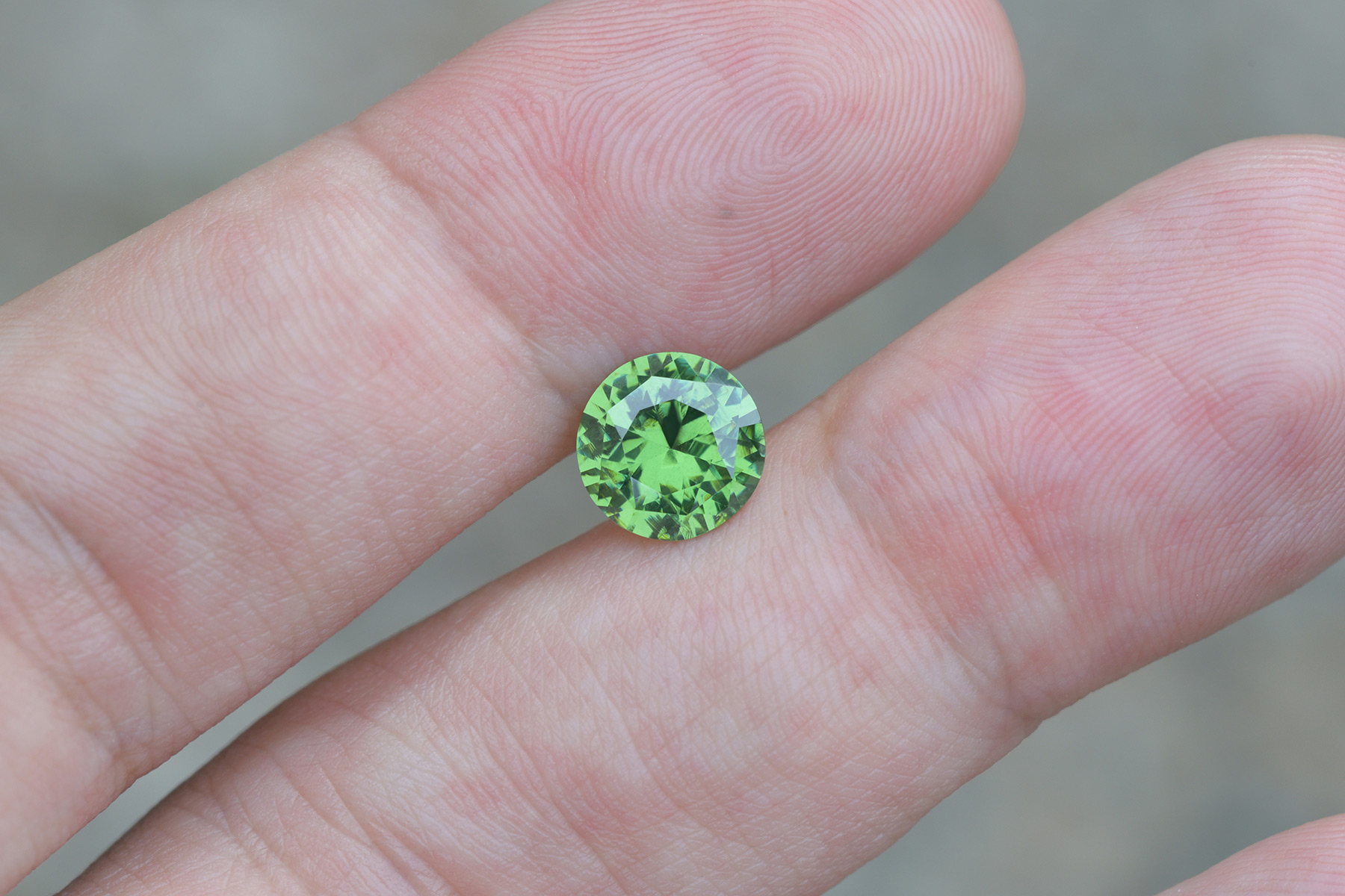 An exceptionally bright and pure-hued vivid green zircon that has not been heated to improve its clarity like the vast majority of green zircons have.