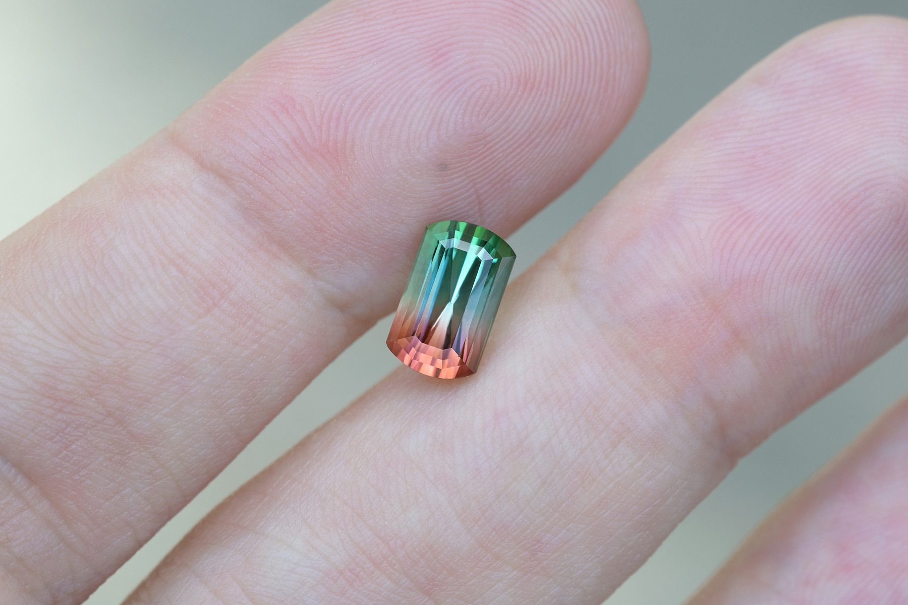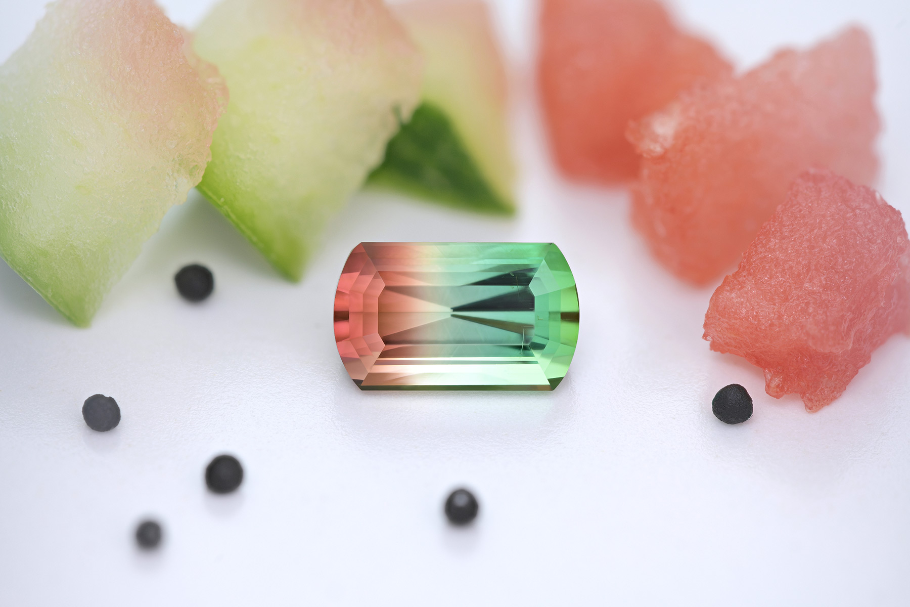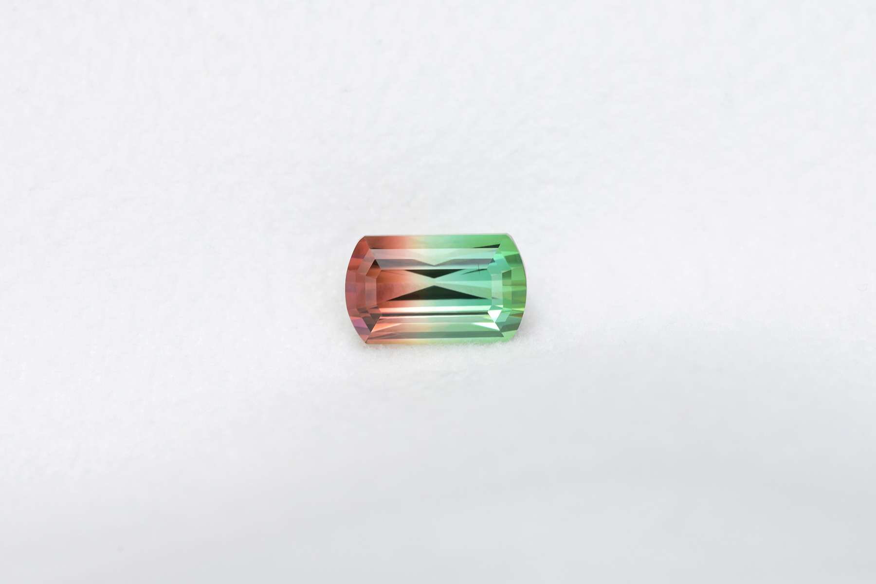 A gorgeous bicolor – or tricolor, if we’re being exact – watermelon tourmaline. Bright and lively.