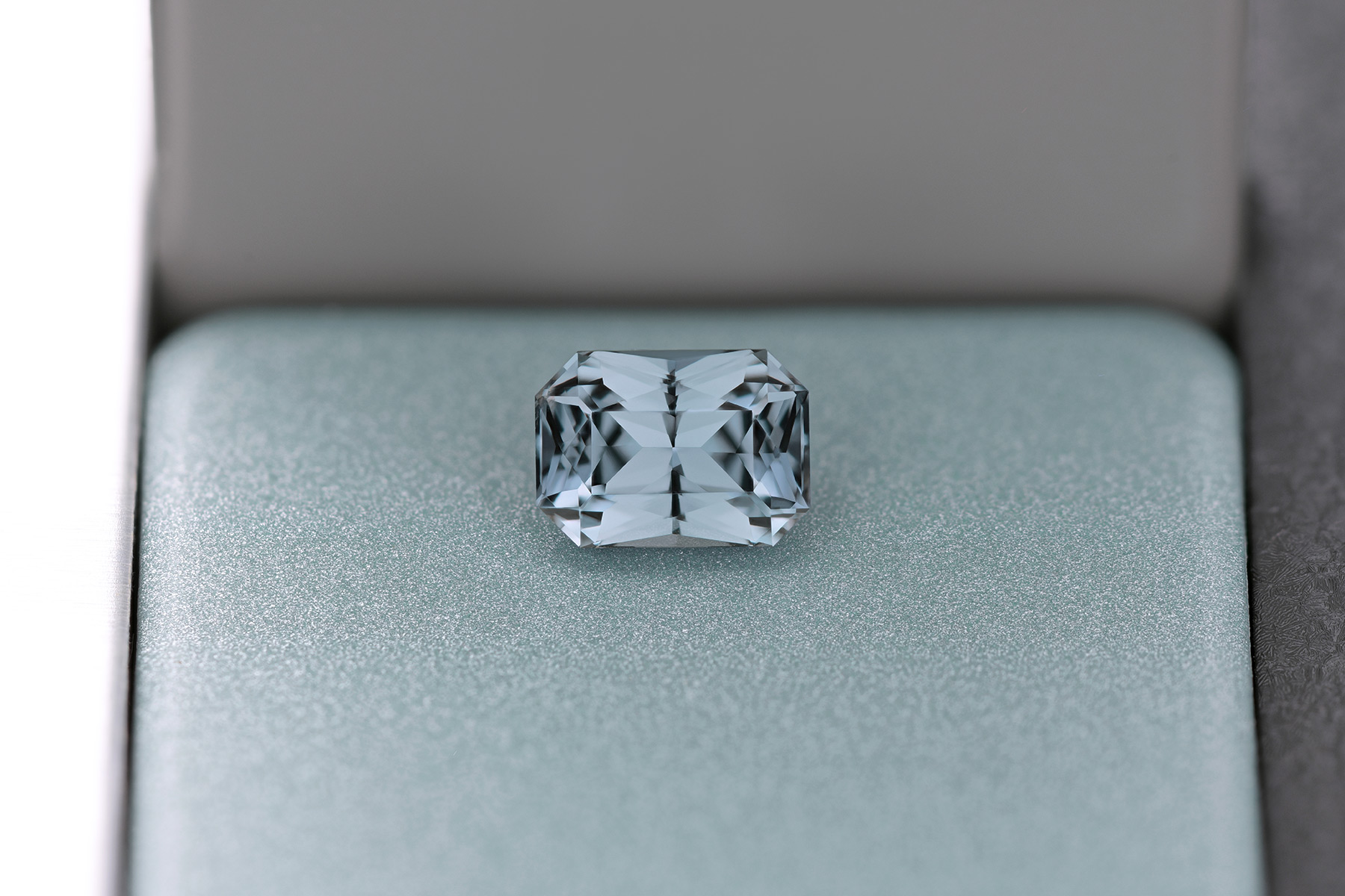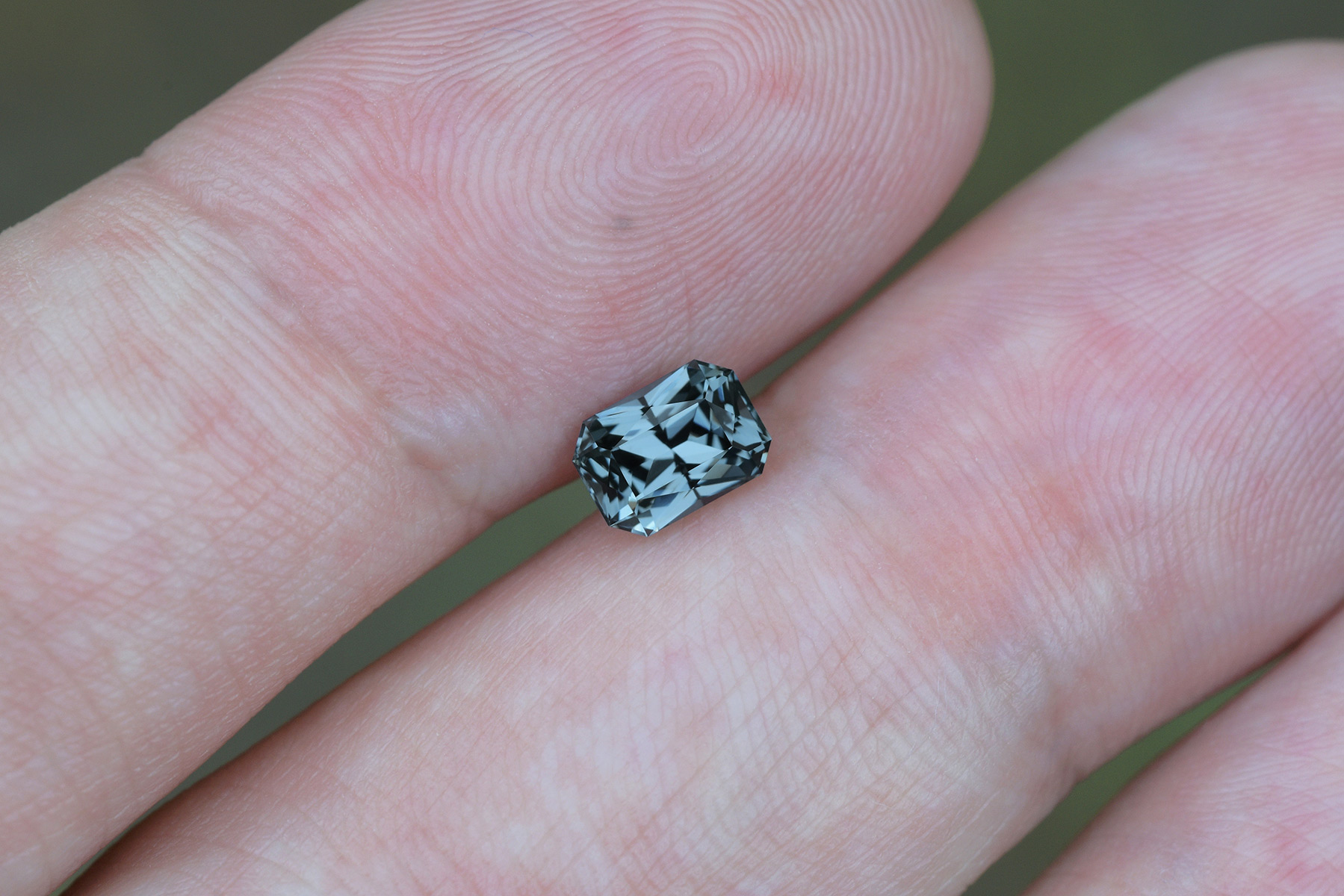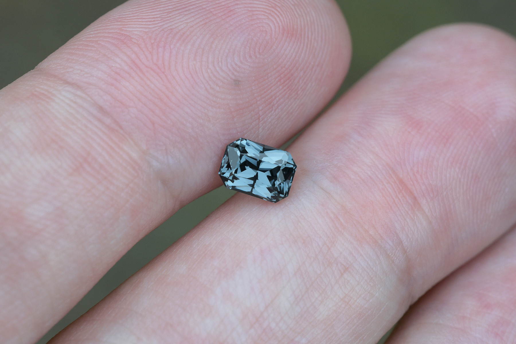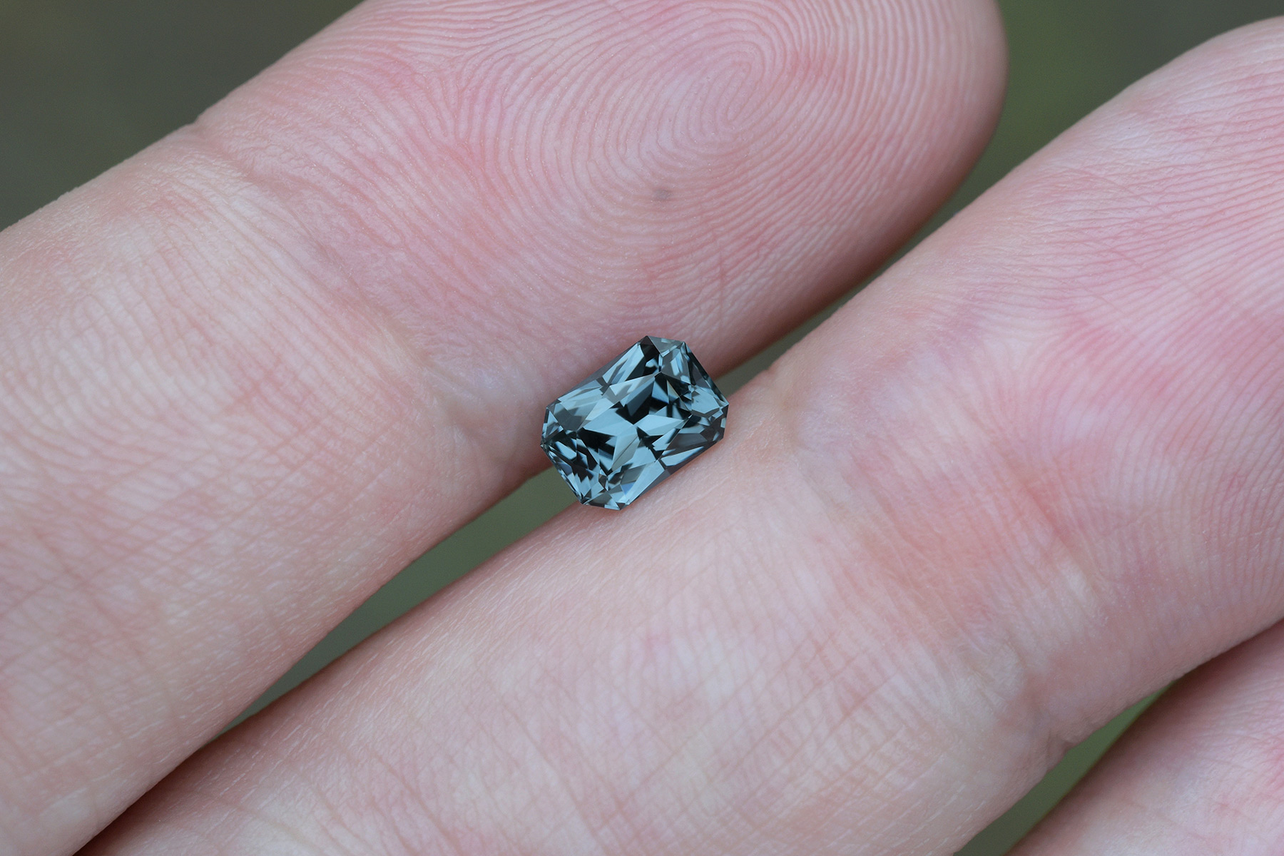 The brightness of this stone was quite a surprise when it was cut. The rough was a darker, fuller, purer grey so we were expecting a sort of dark gunmetal after cutting but it ended up bright greenish grey instead.