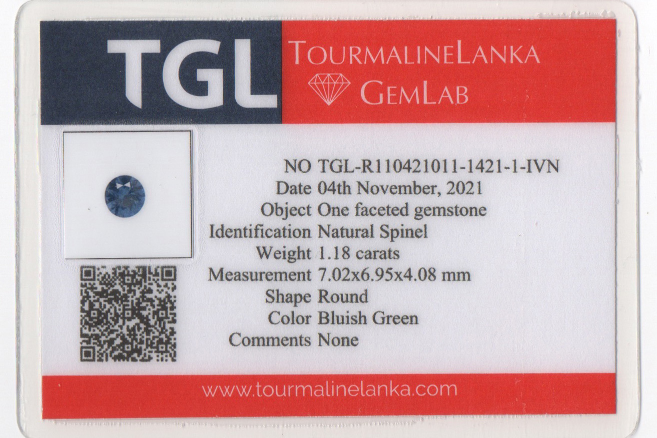 A brilliant, sparkly and well saturated teal spinel with a large face-up spread that makes it look more like 1.50 ct. than 1.00.