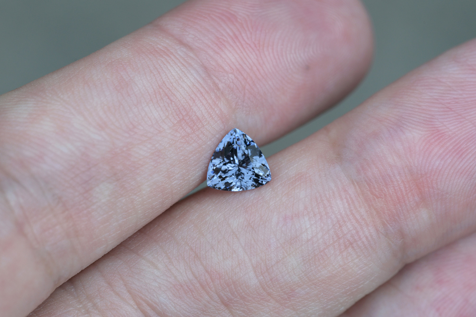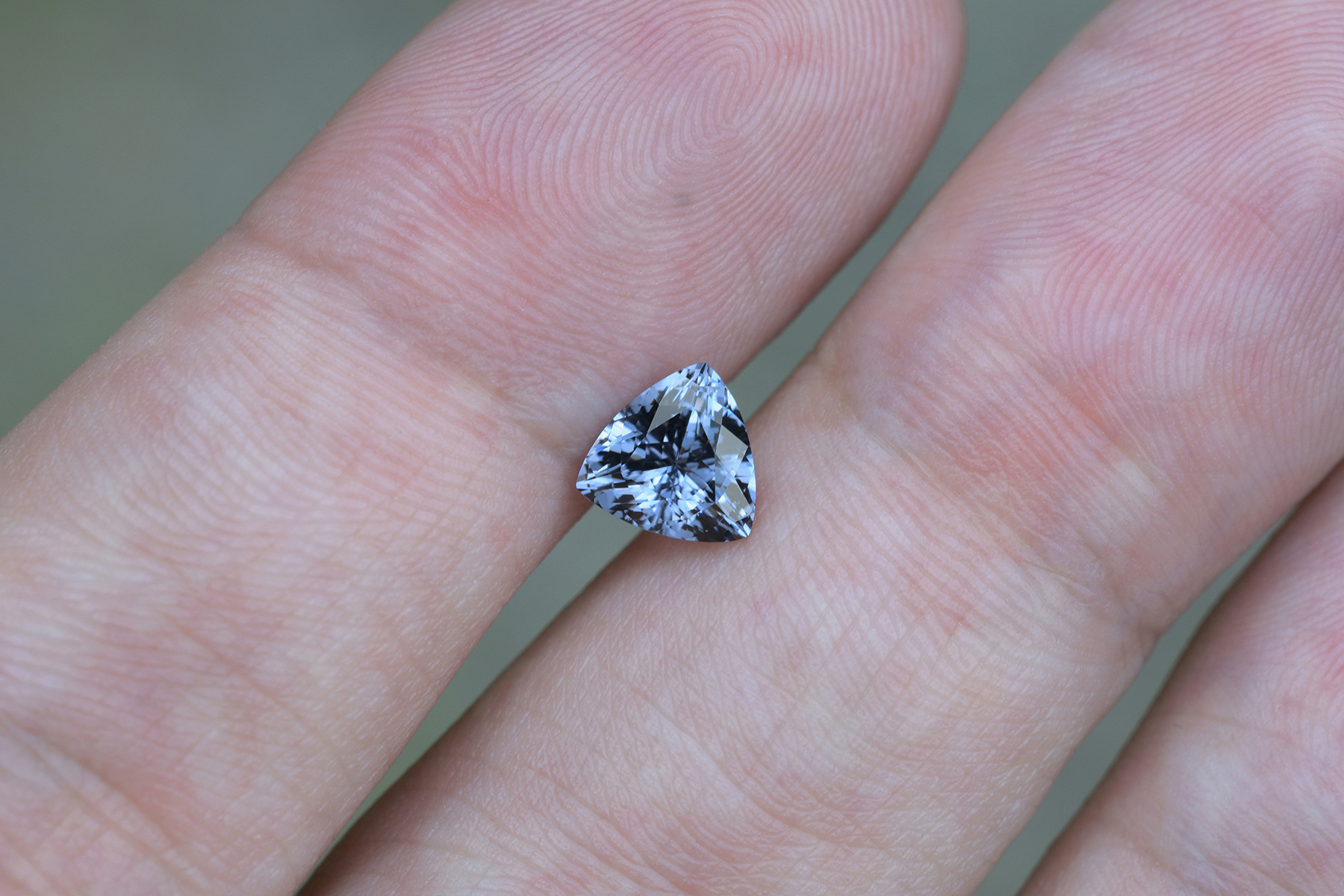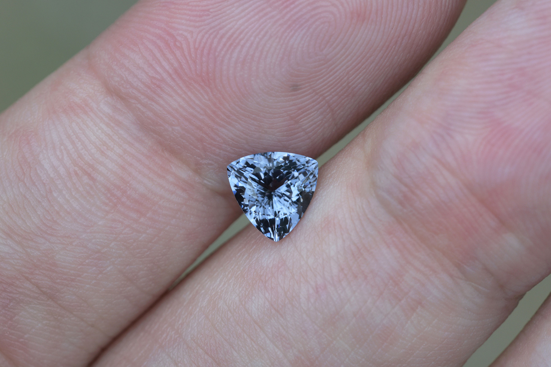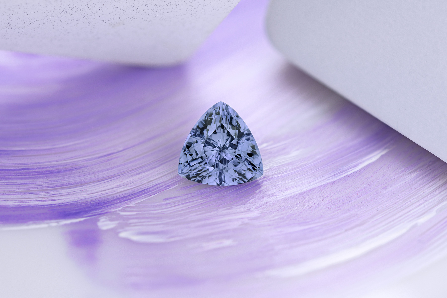 Triangular, modified brilliant cut crown with a modified step cut pavilion