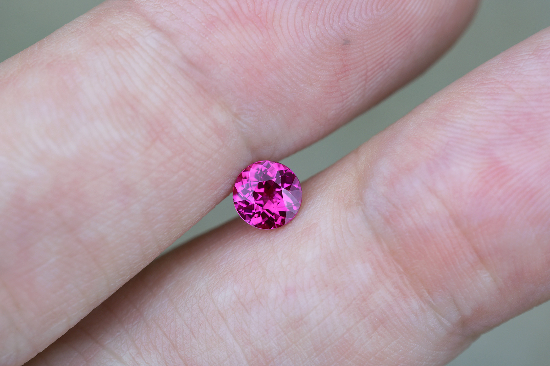 An ultra vivid, extremely saturated hot pink sapphire. It's so highly saturated and glowy it looks more like a high quality Burmese or Tanzanian spinel than a sapphire.