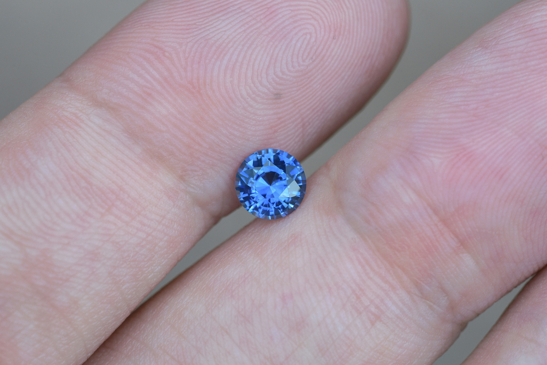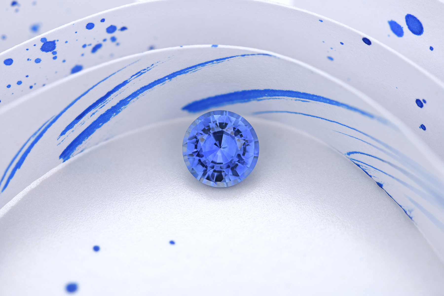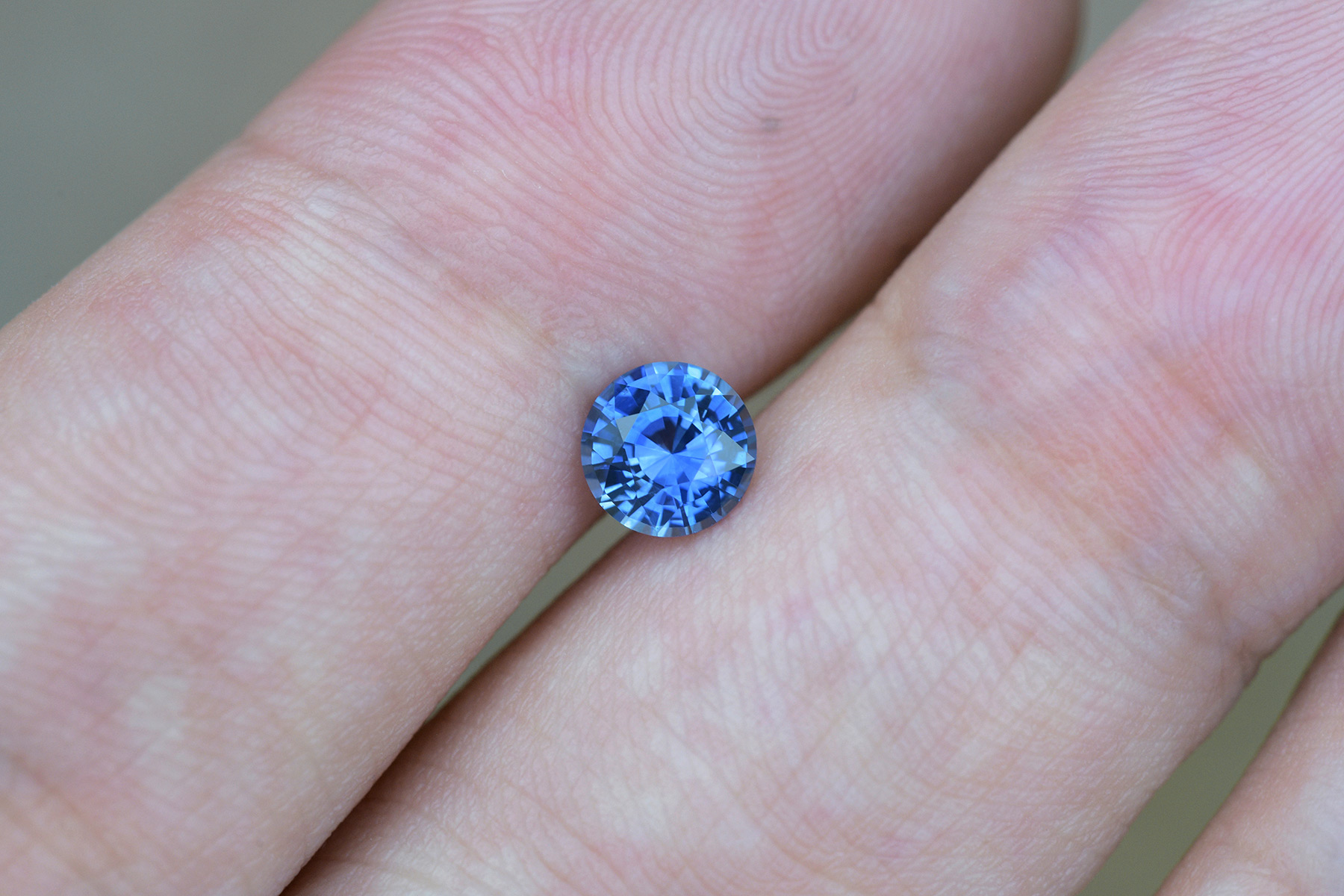 A bright, brilliant blue sapphire that was recut from 1.15 ct. to close its window and center its culet, resulting in a more pleasant look and much better light return.
