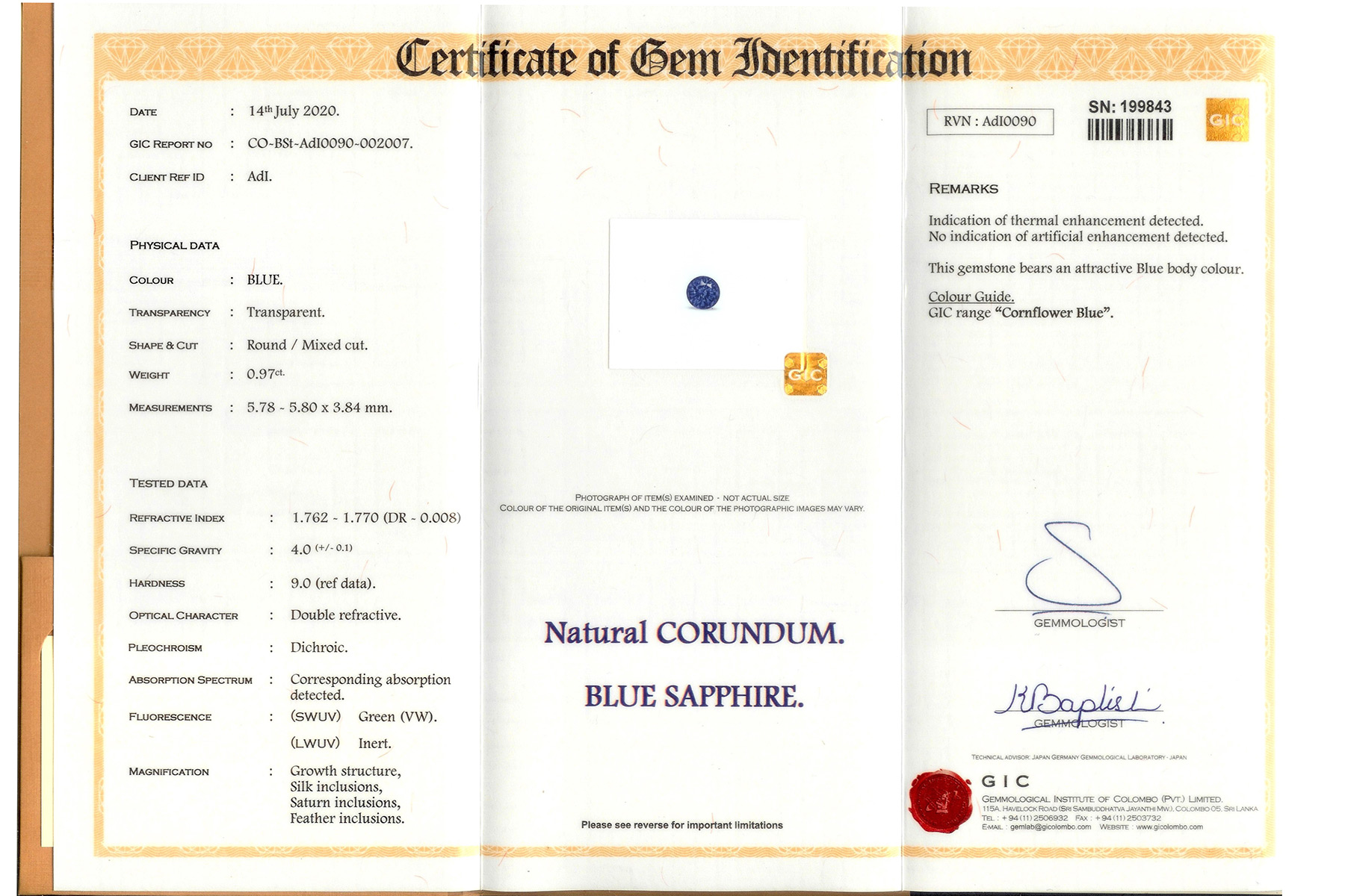 This stone is a particularly good example of the classic cornflower blue hue that the gem trade has come to associate with Ceylon sapphires over the years.
