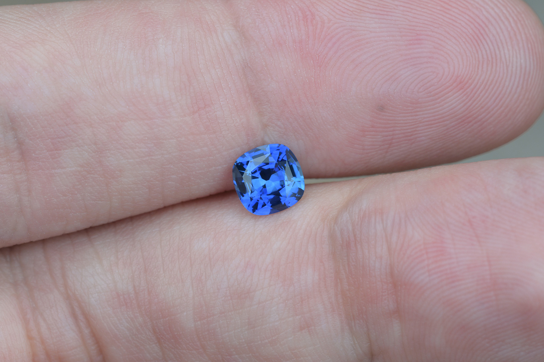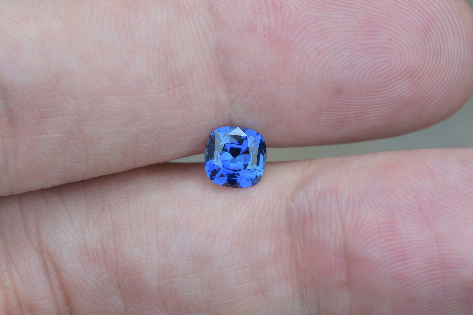 Its hue is pure and saturated, its clarity is excellent, and it’s also well cut after we had it recut from its initial 1.25 carats to remove the window that it had.