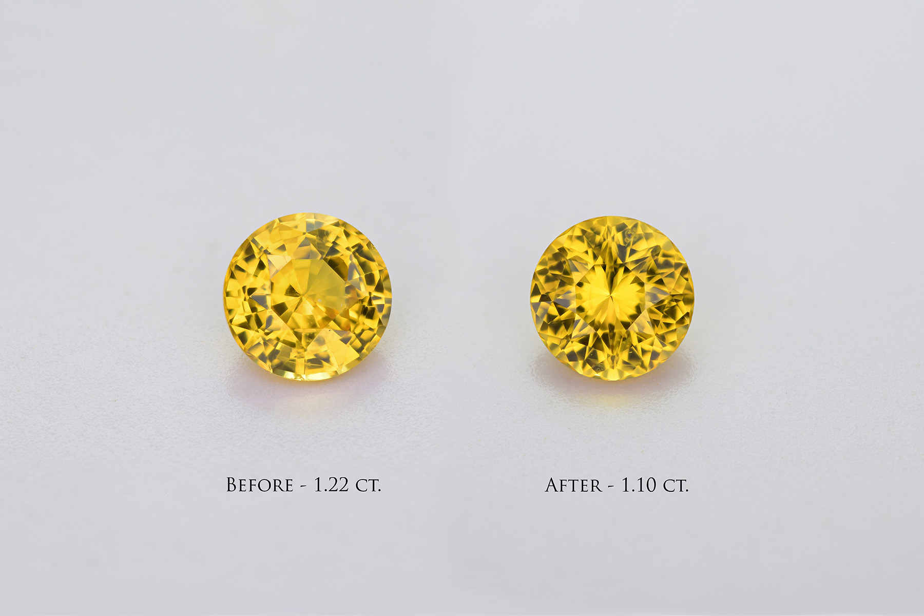 It was recut from 1.22 ct. to remove the window that it had and is now beautifully bright and brilliant as a result.