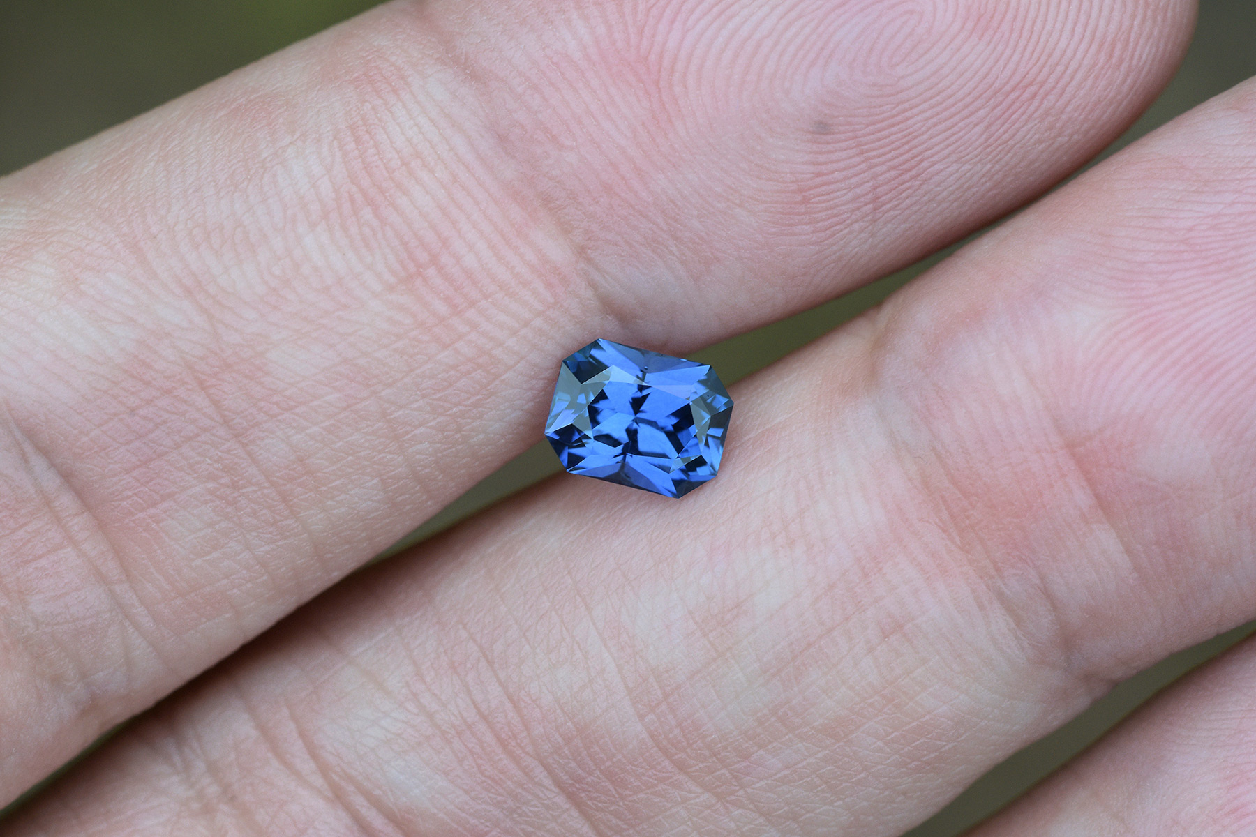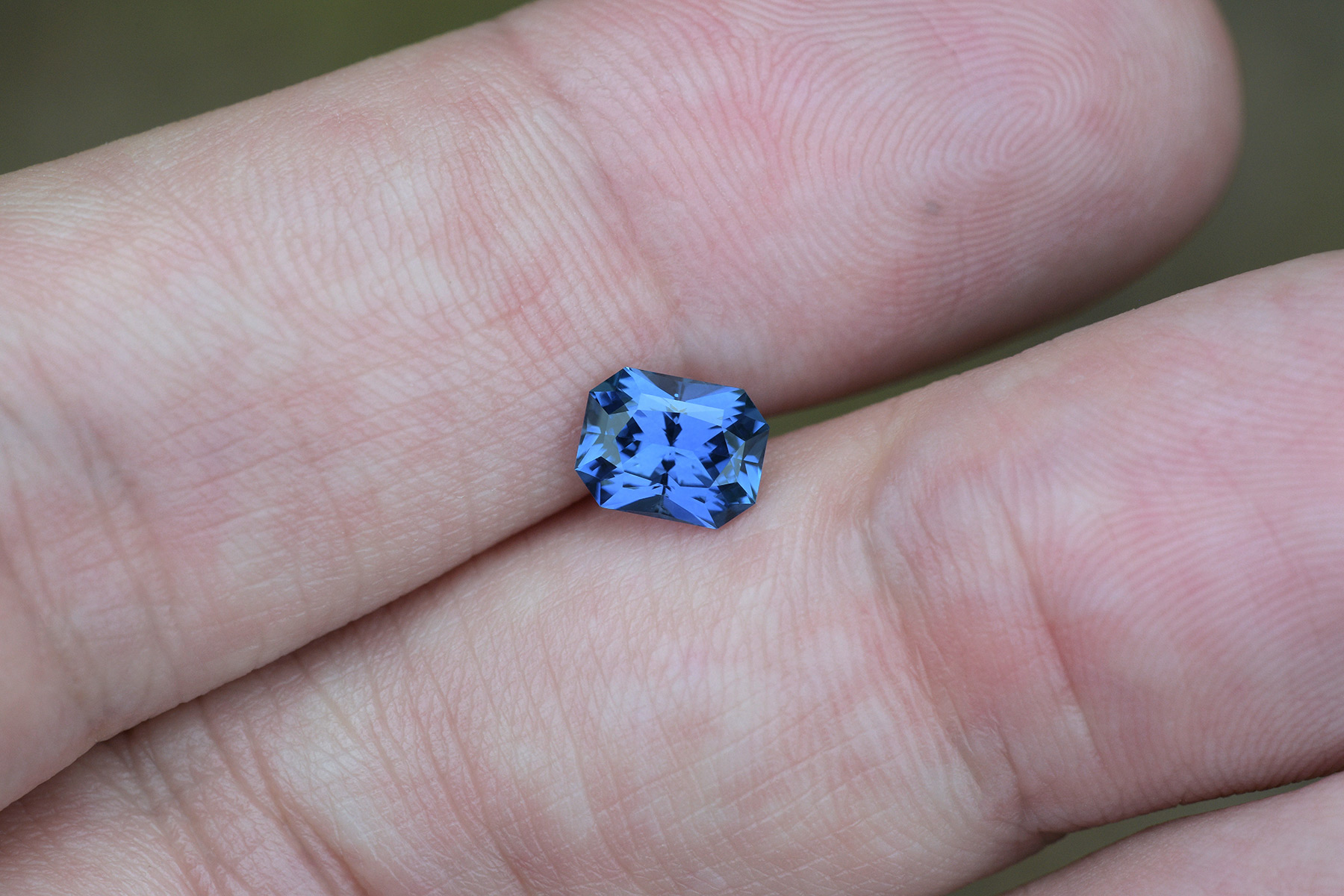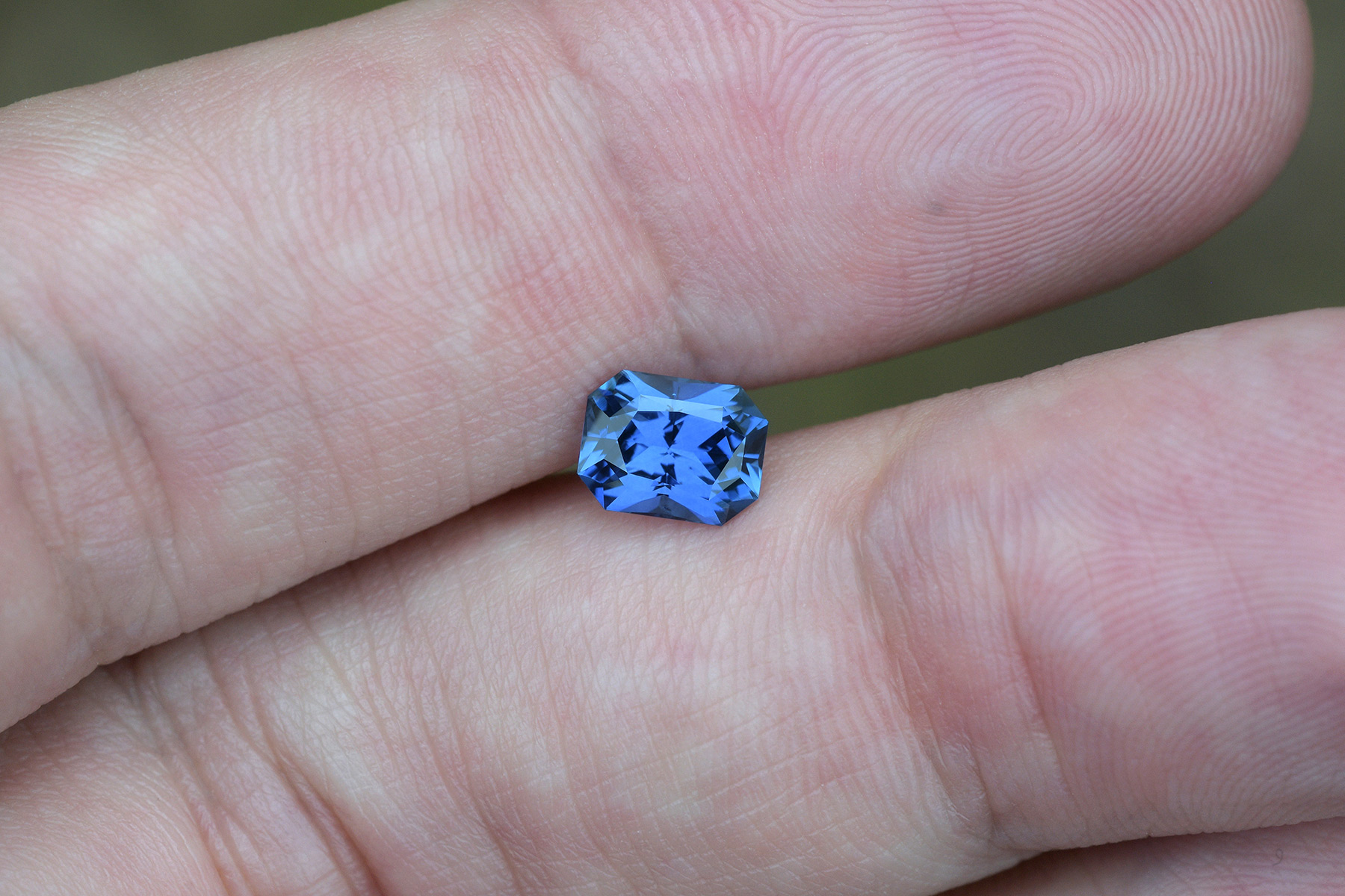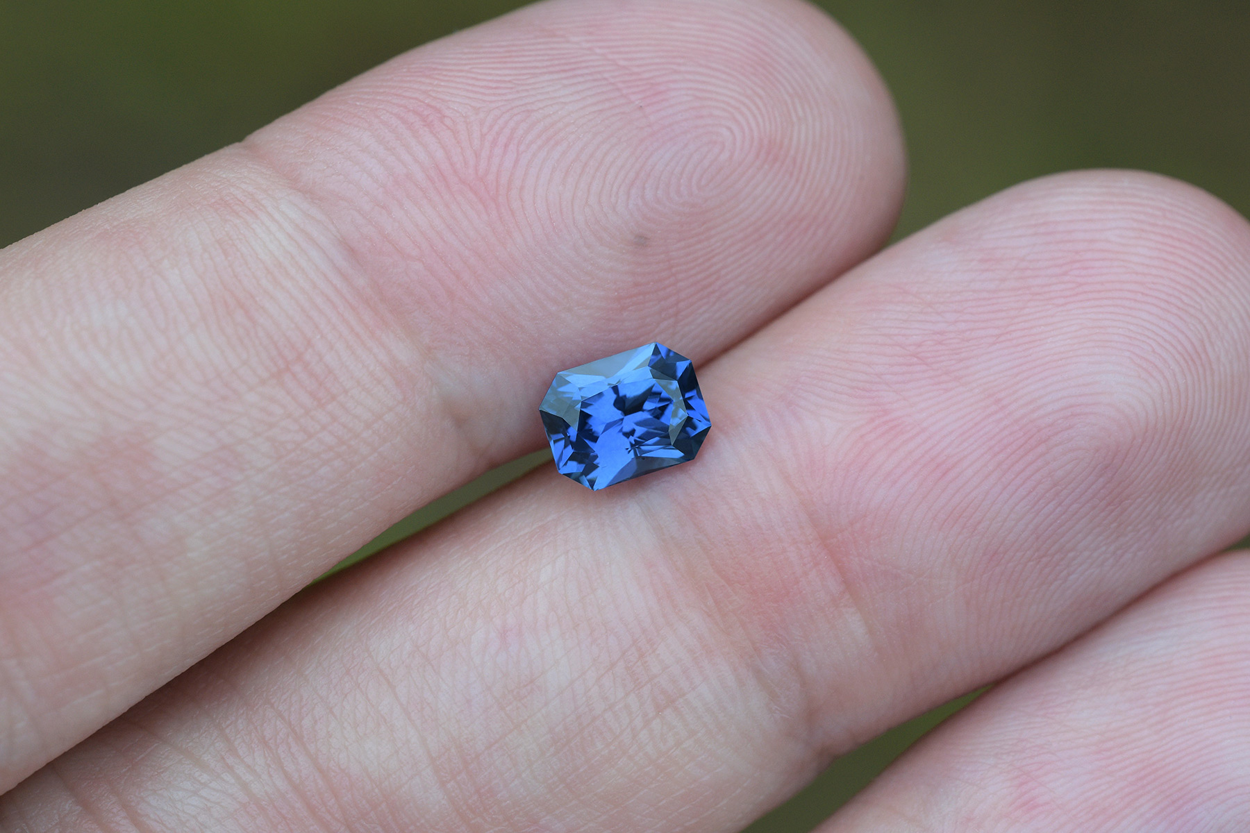 A well cut radiant sapphire, recut from a wonky stone of 1.82 carats that just couldn’t light up evenly no matter what because of all the cutting issues that it had previously.