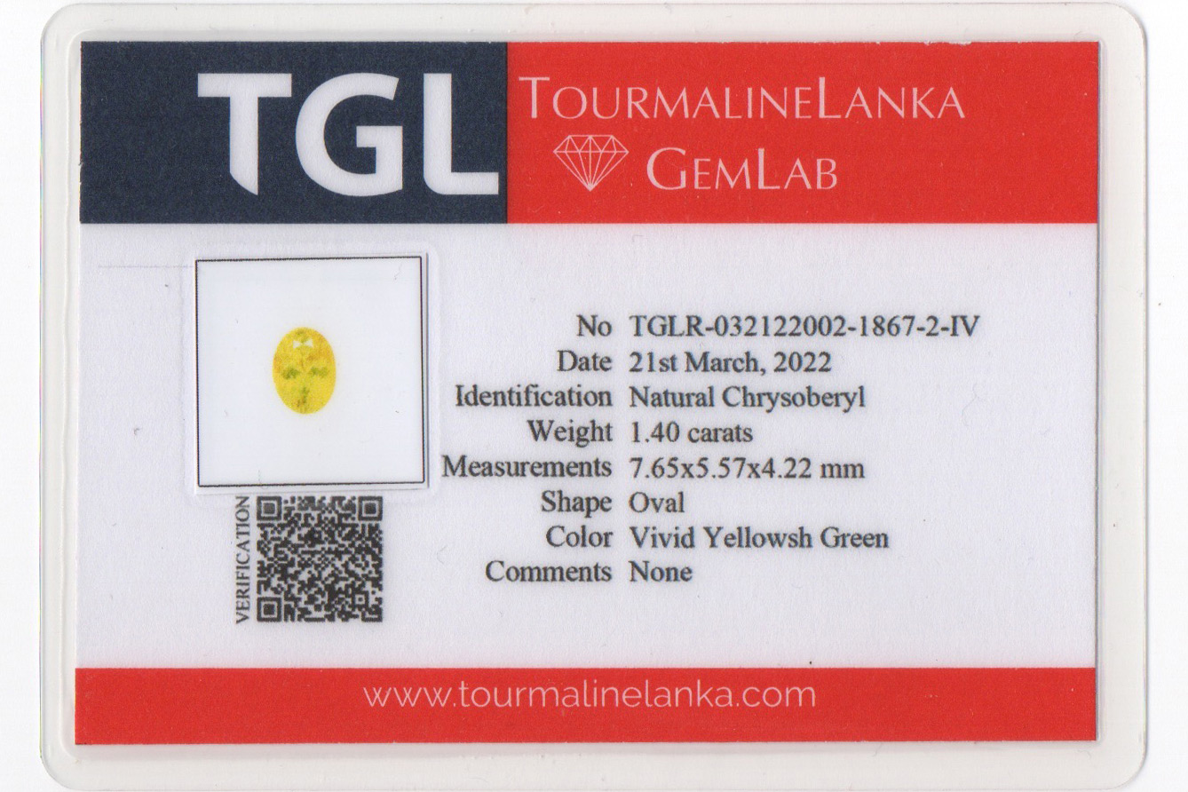 A bright and brilliant chartreuse chrysoberyl in a very popular and very rare color.