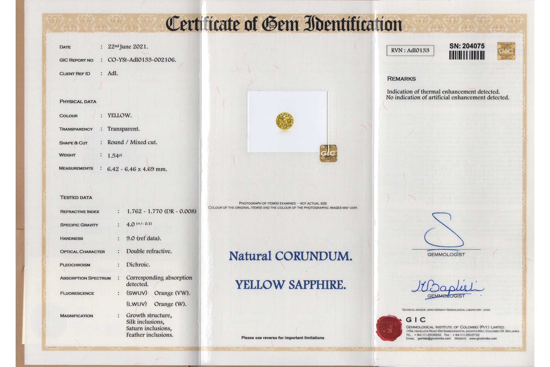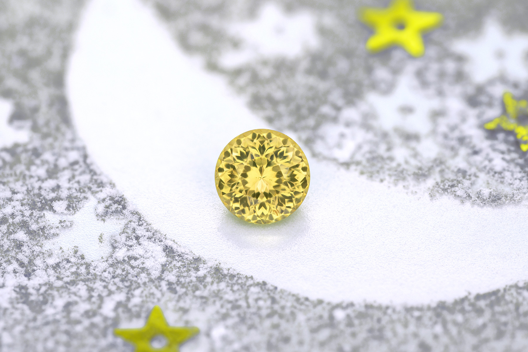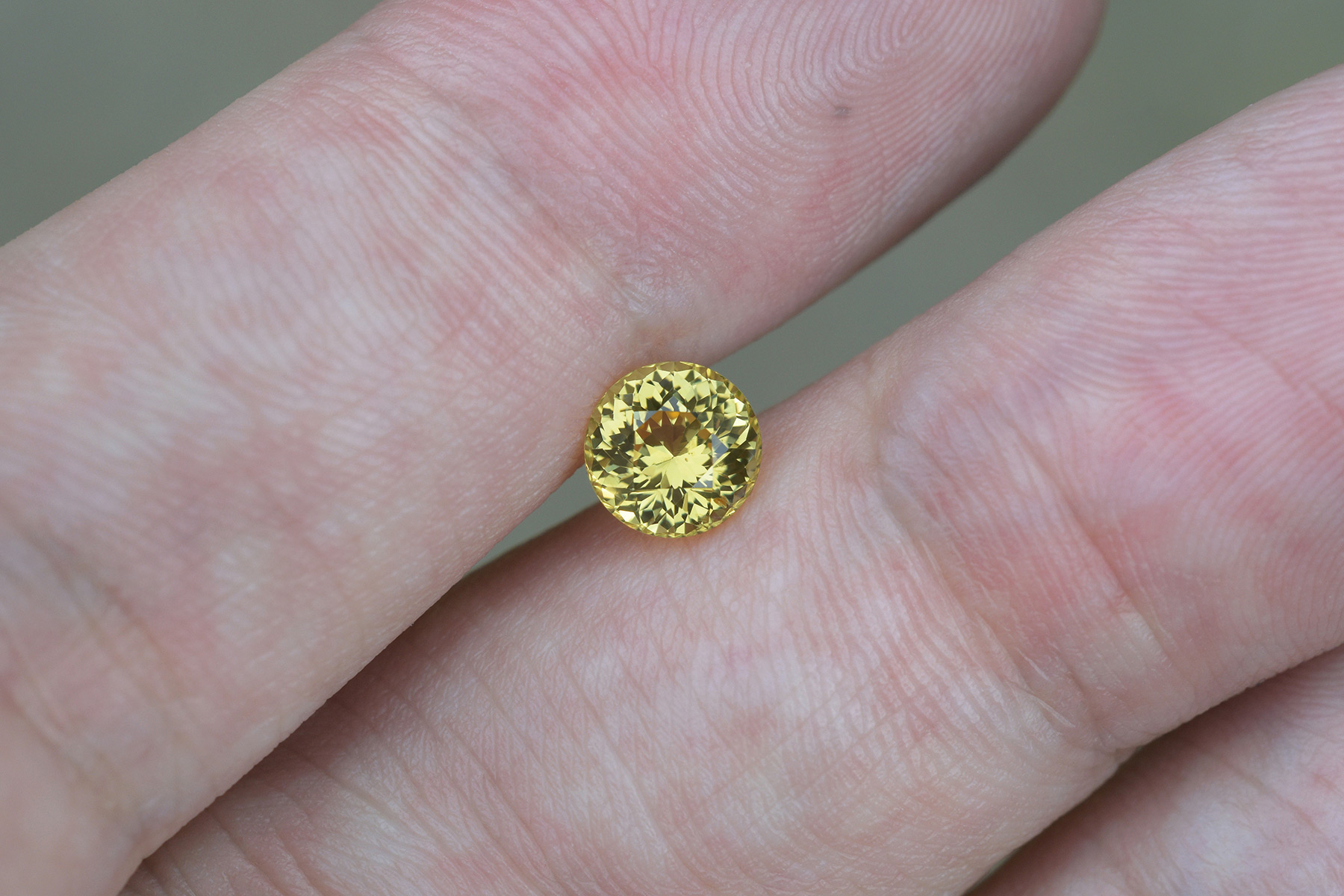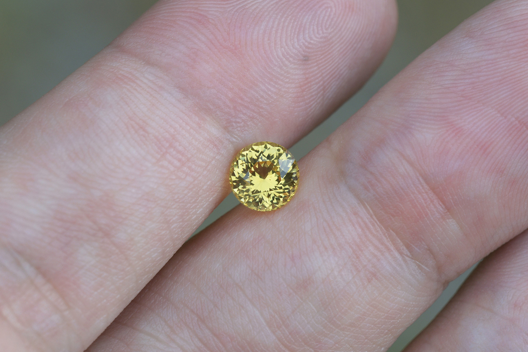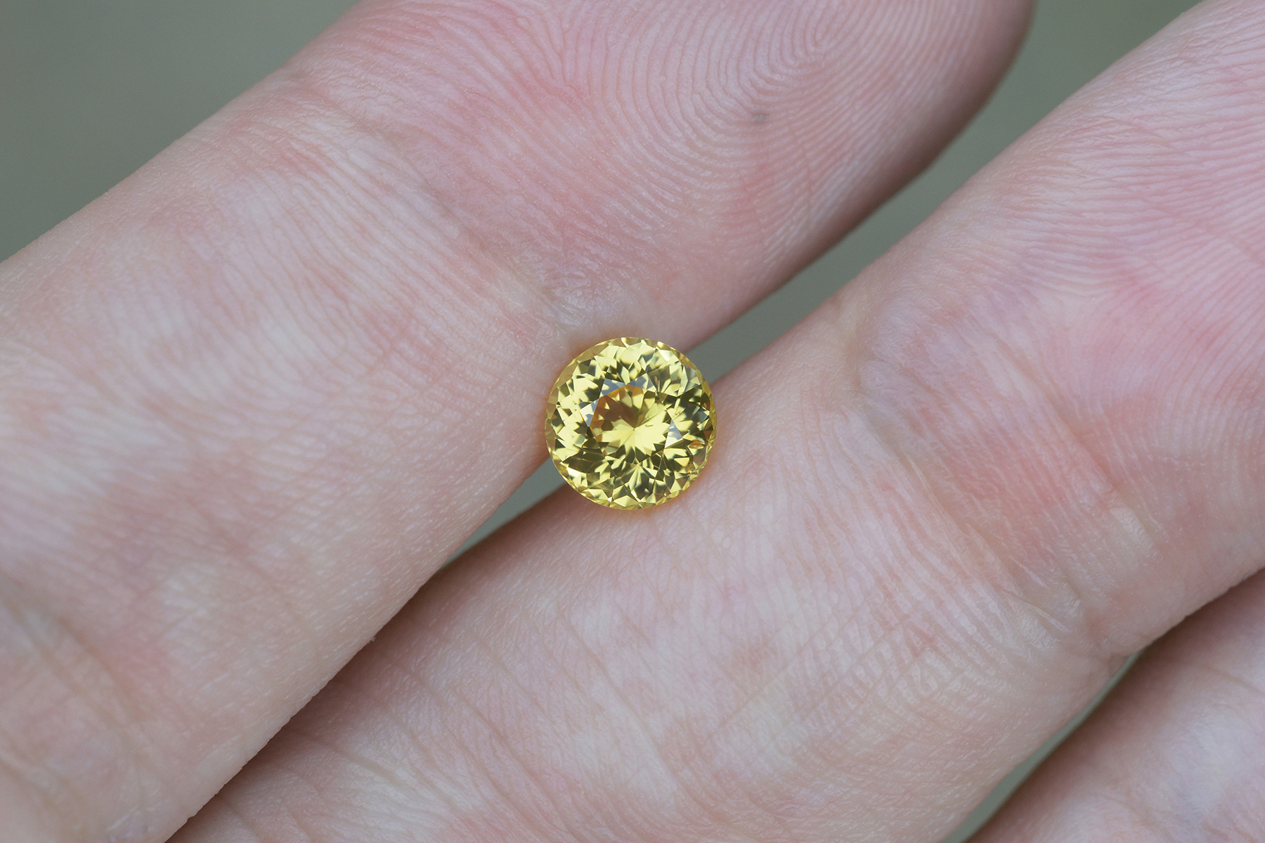 A bright, brilliant yellow sapphire with a very pure medium-light hue. Well cut and eye clean.