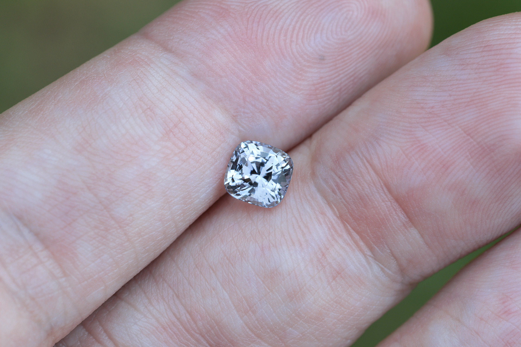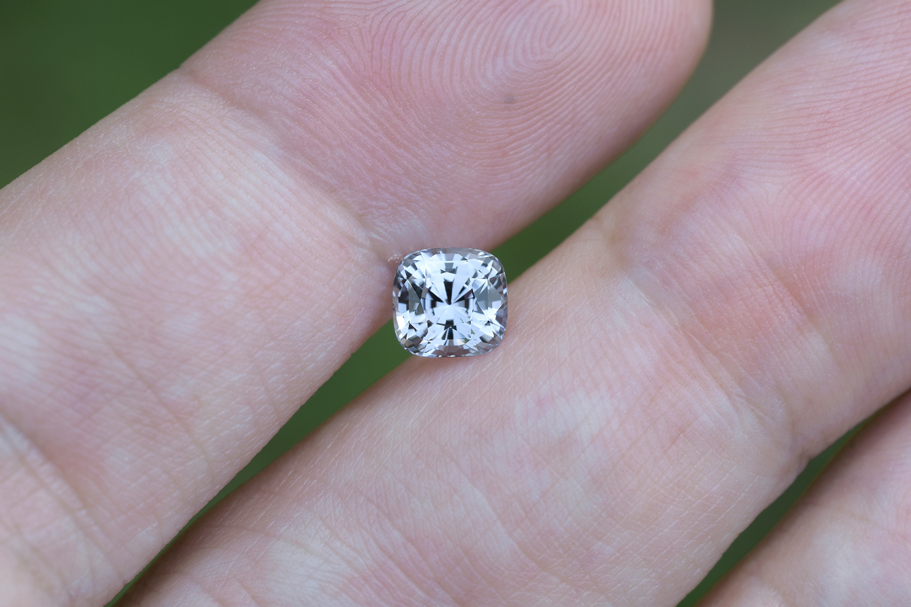 The slight silk in this unheated white sapphire gives it a very pleasant ‘soft’ look that helps it light up well both indoors and outdoors and its well made cut ensures it never looks dull, extinct or dim.