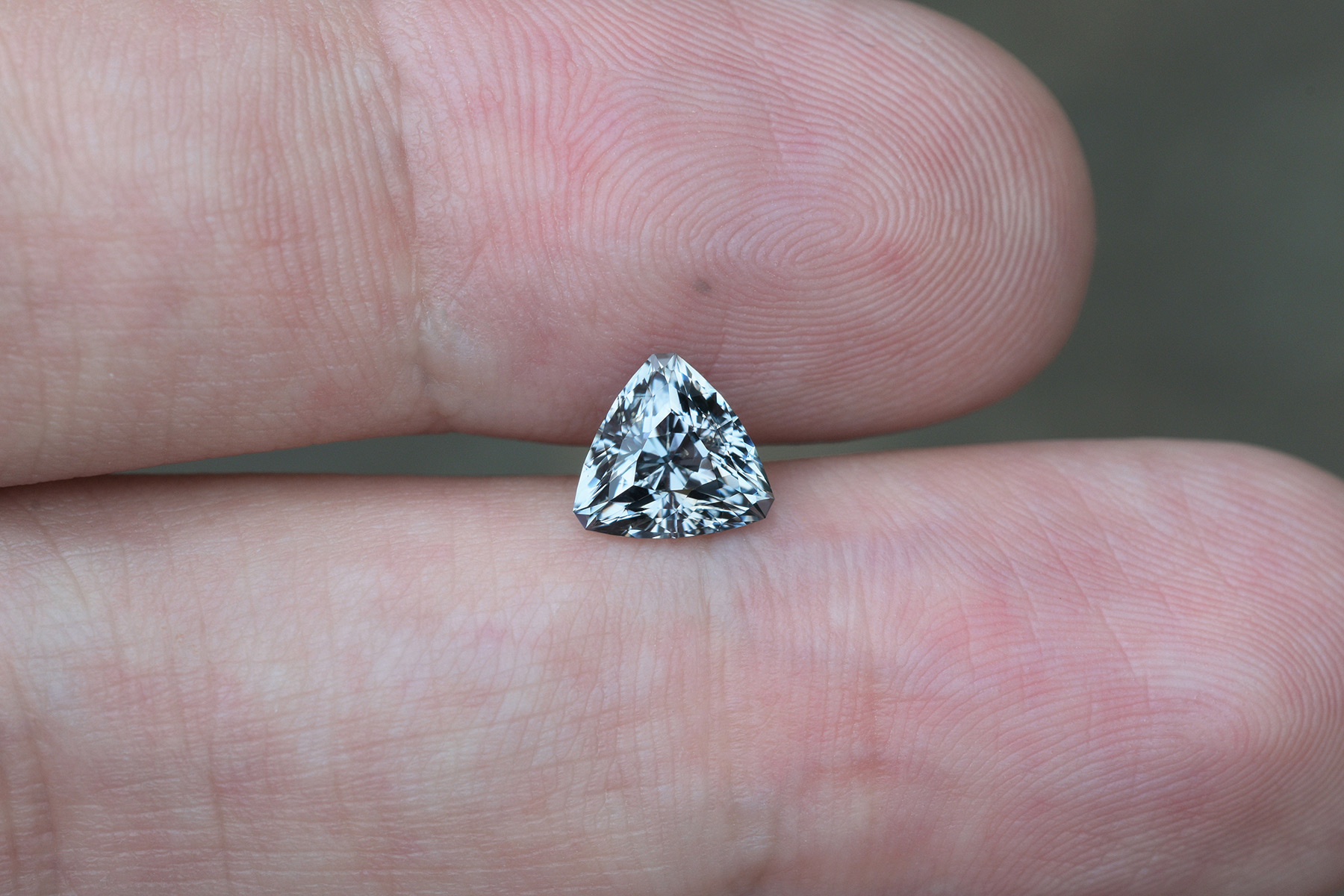 A pristine grey sapphire with a very nice cut and tons of brilliance thanks to the 139 facets on it.