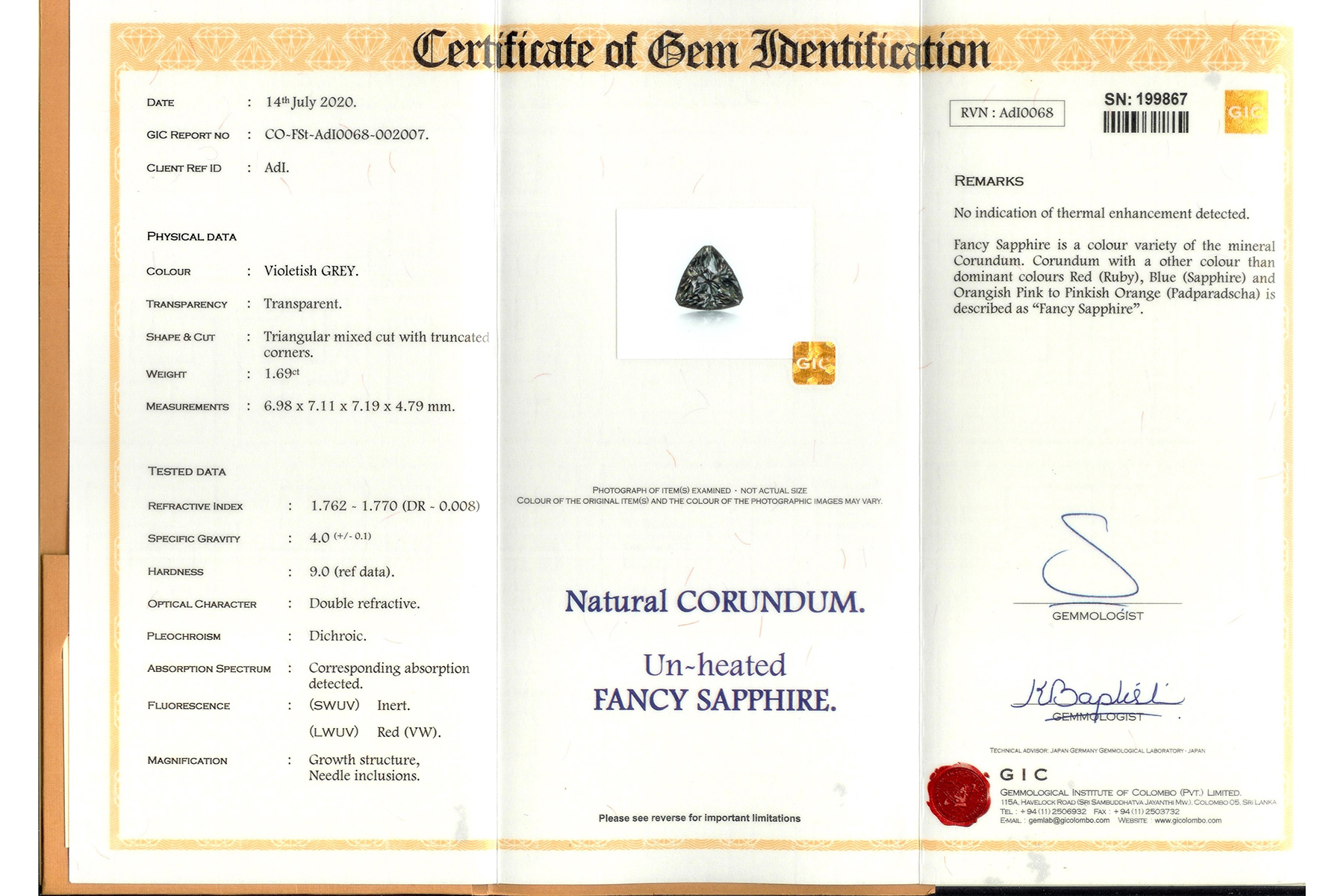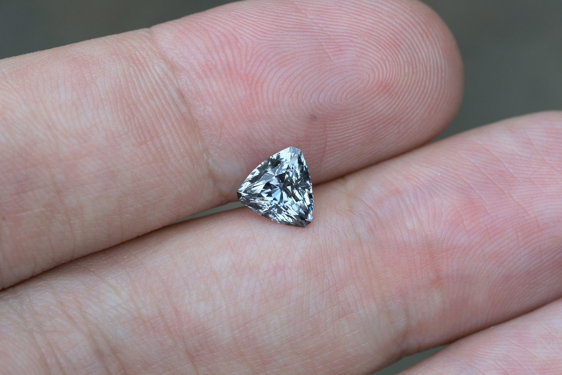 Grey sapphires aren’t common to begin with, and ones cut into sharp looking fancy cuts that don’t save weight on a special color are that much rarer (with the uncut rough in this case being over 4 carats).