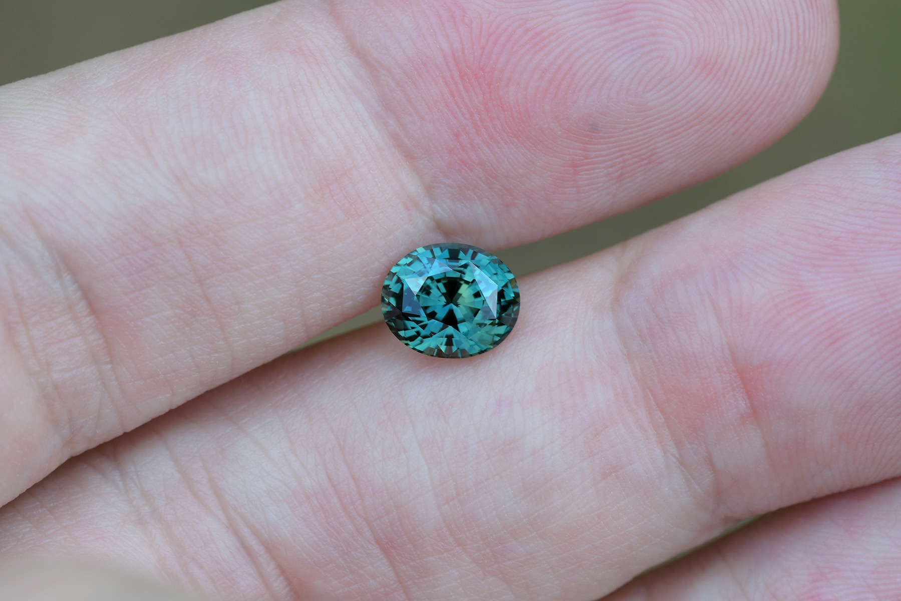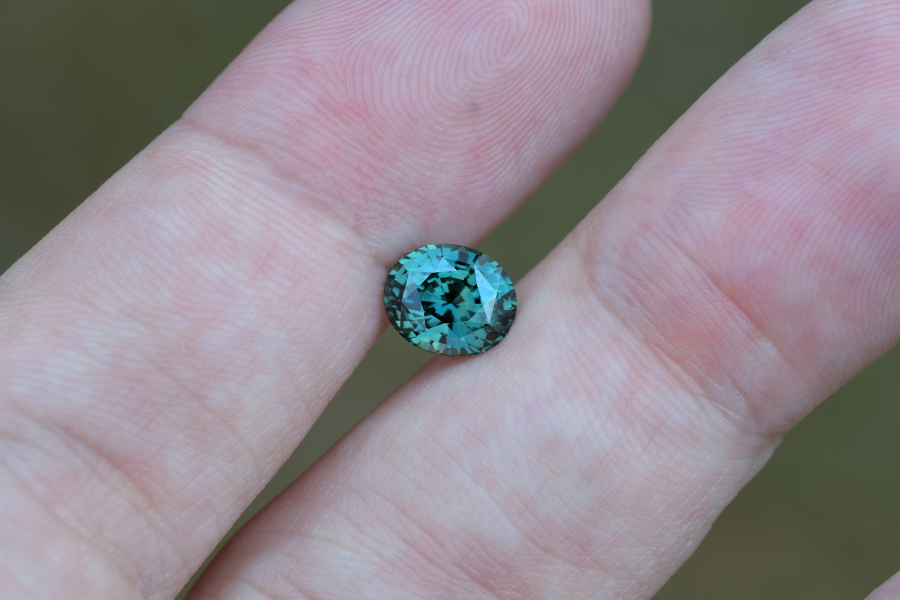 A word on saturation: we don’t call any of our green sapphires vivid because green sapphires physically cannot be vivid in the same sense that tsavorites or tourmalines are. So intense is the highest grade we will ever assign to a green sapphire, but this stone is as saturated as it can be for its kind.