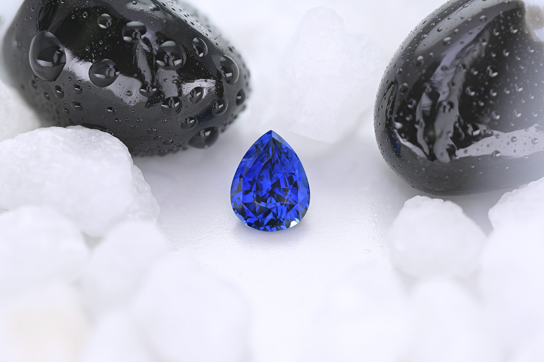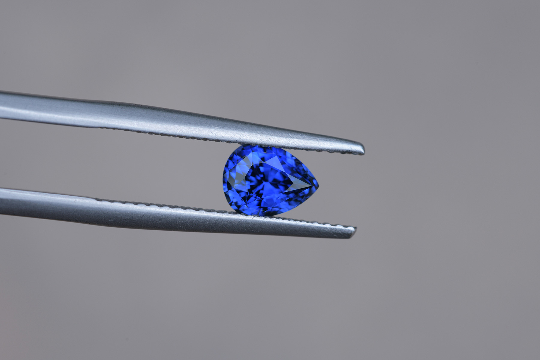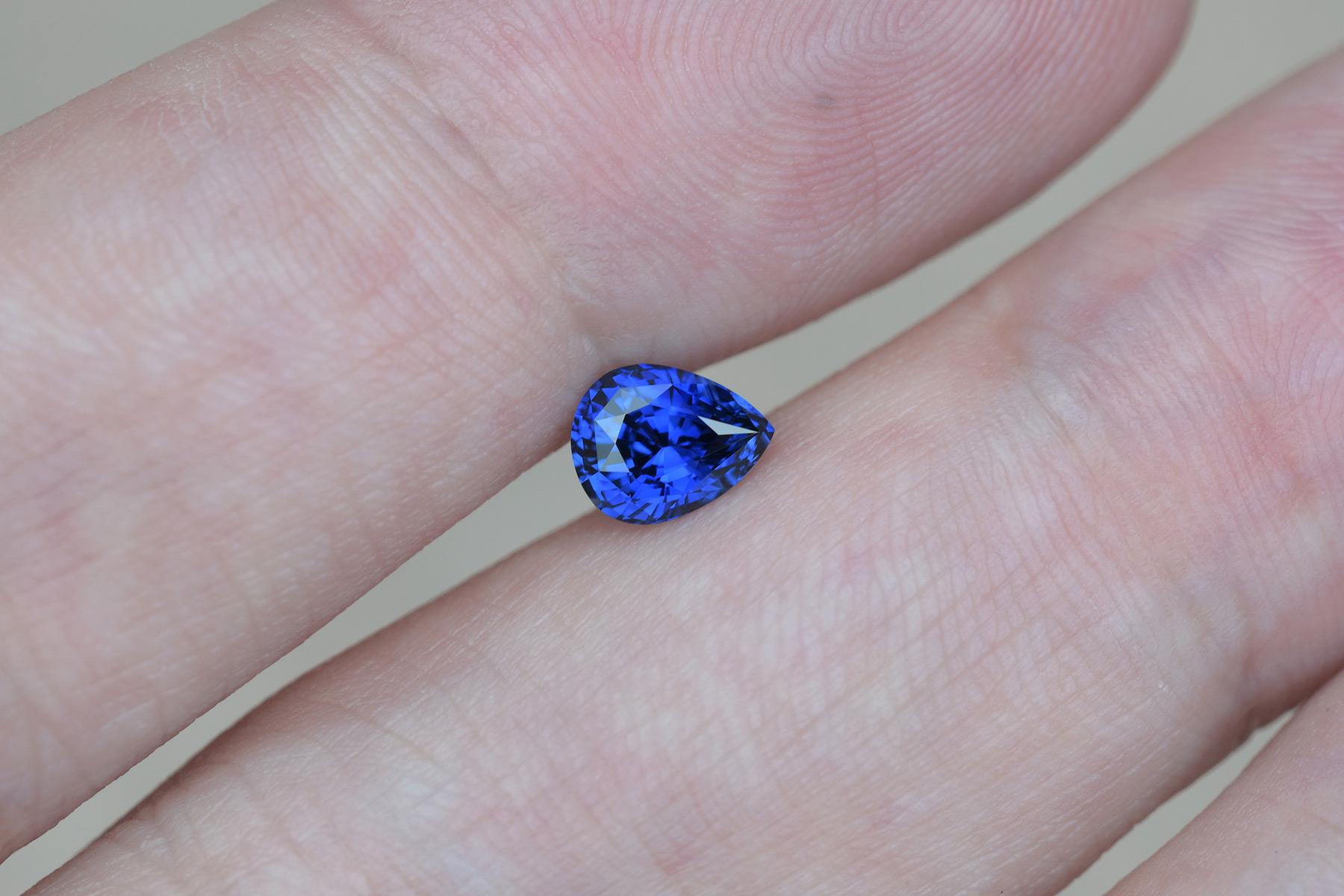 Sapphires cut into pear shapes don’t usually light up well at all when it comes to more desirable, darker shades of blue – it’s the usual rule with pear cuts that either the base or the tip of the pear end up looking dark whenever the rest is lit. That is especially true the further down the tonal range one goes: so while it’s possible to find very light blues that light up relatively well, evenly lit royal blues are very few and far between in this shape.