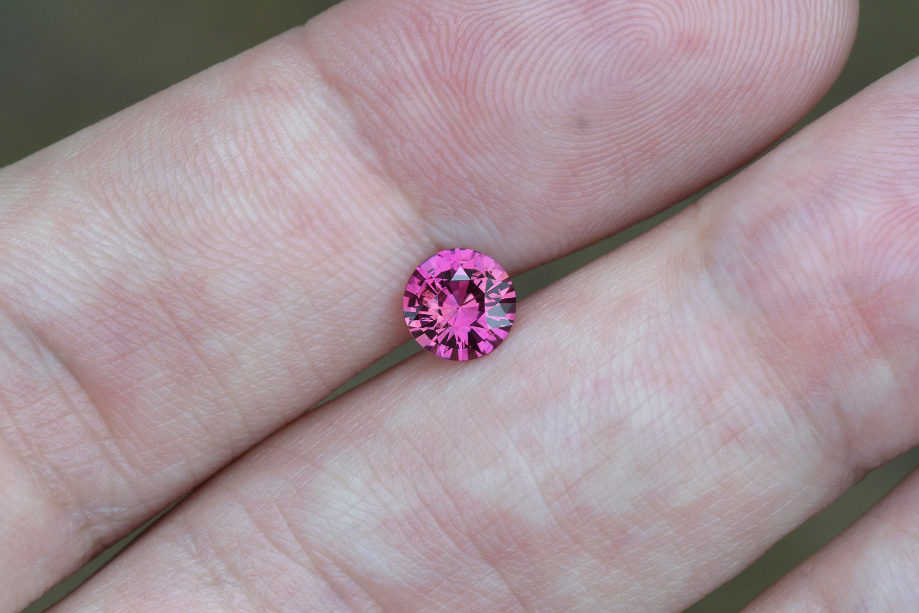 An excellent round orangish pink sapphire.