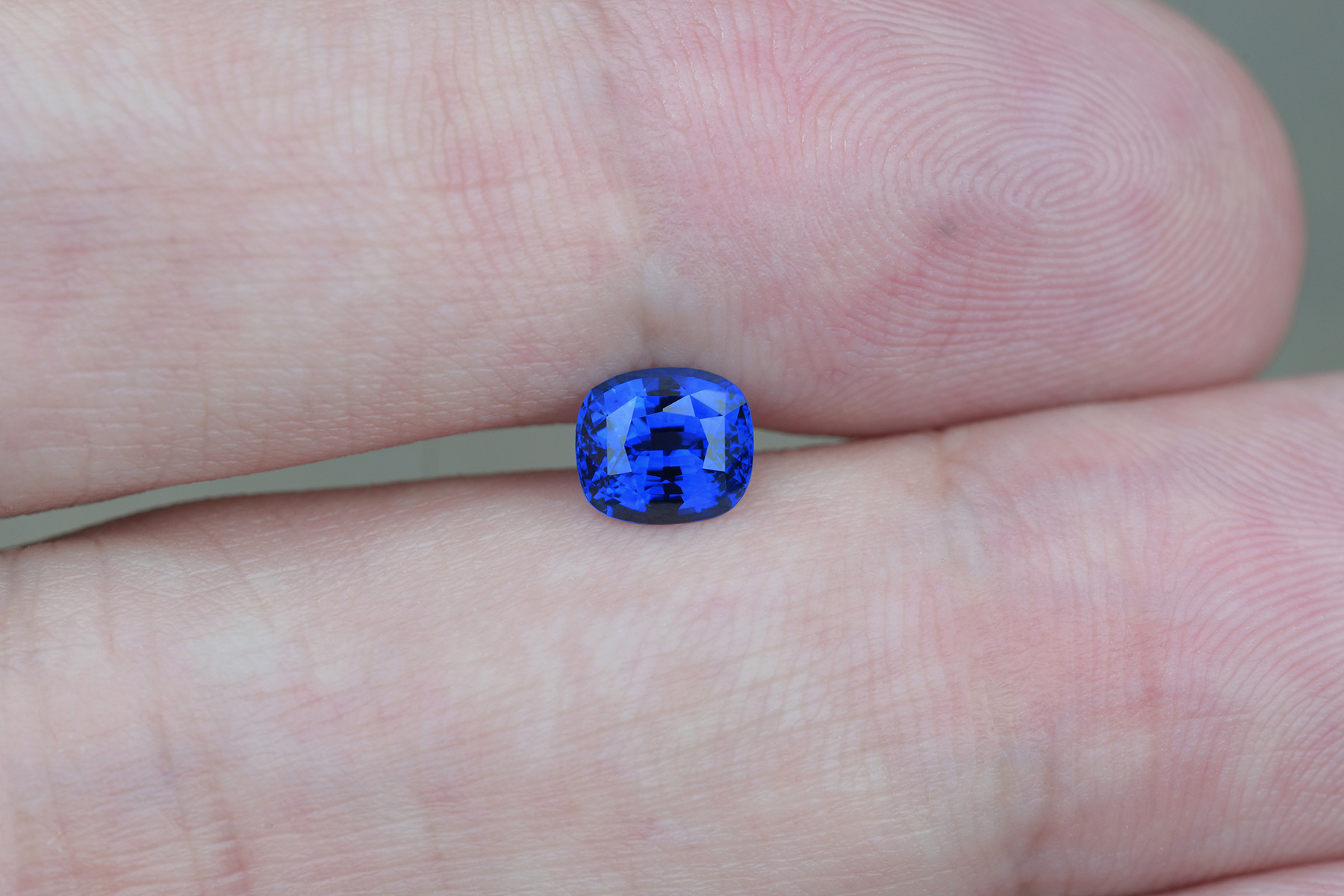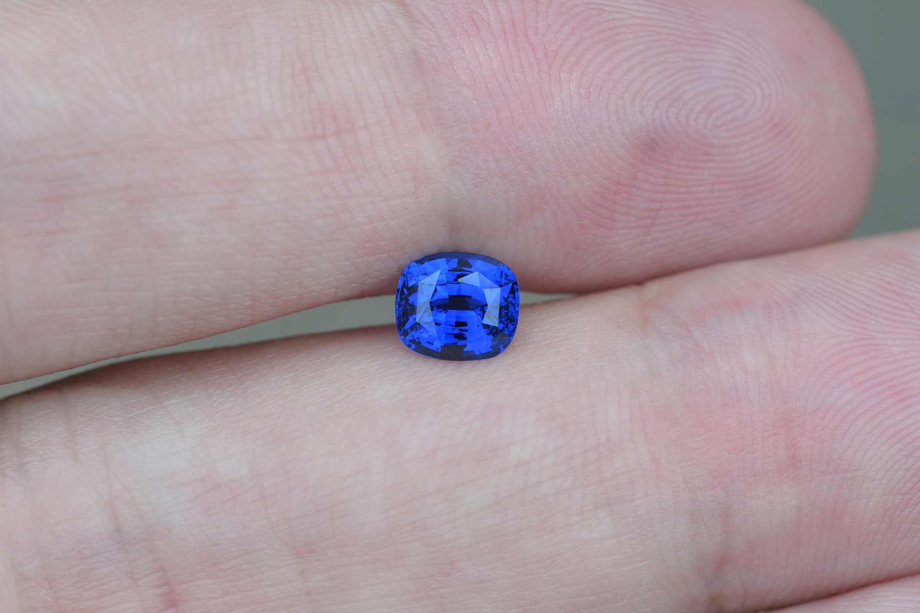 The stone is nearly loupe clean, and the color is so rich, velvety and saturated that at times it glows and looks almost electric. It’s absolutely gorgeous, and good enough to keep as an exceptional color sample because it blows most vivid royal blues right out of the water when it’s put next to them.