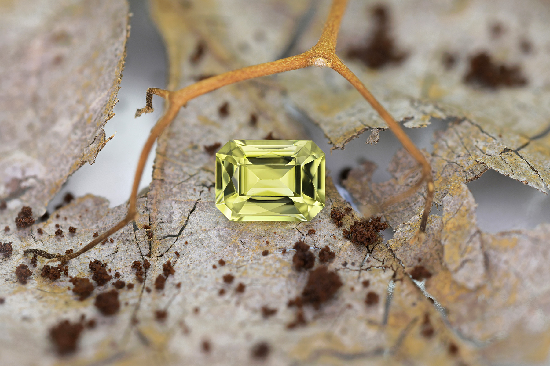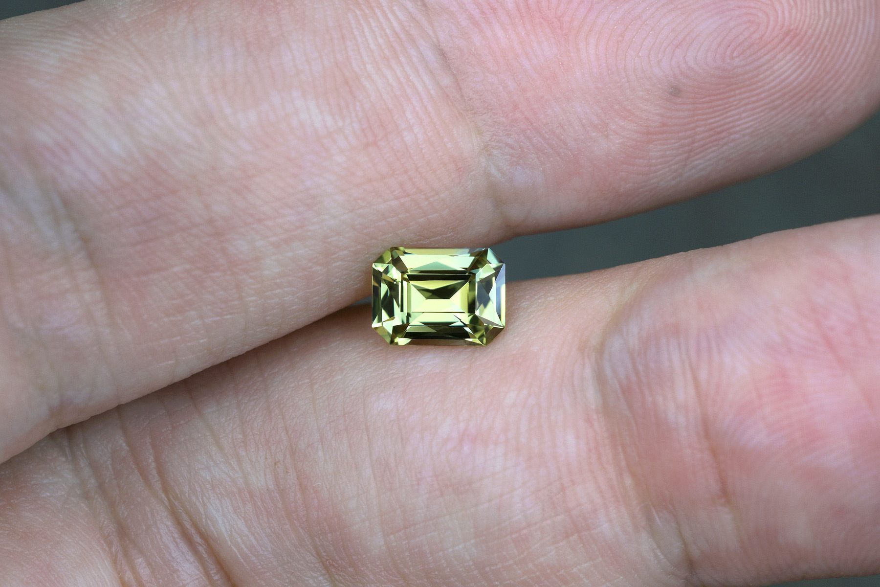 Its color reminds of chrysoberyl, but it should be noted that it looks more accurate in the daylight images than the studio ones – the warmer light in the studio images gave it some brown when in reality it has none when seen in daylight indoors or outdoors.