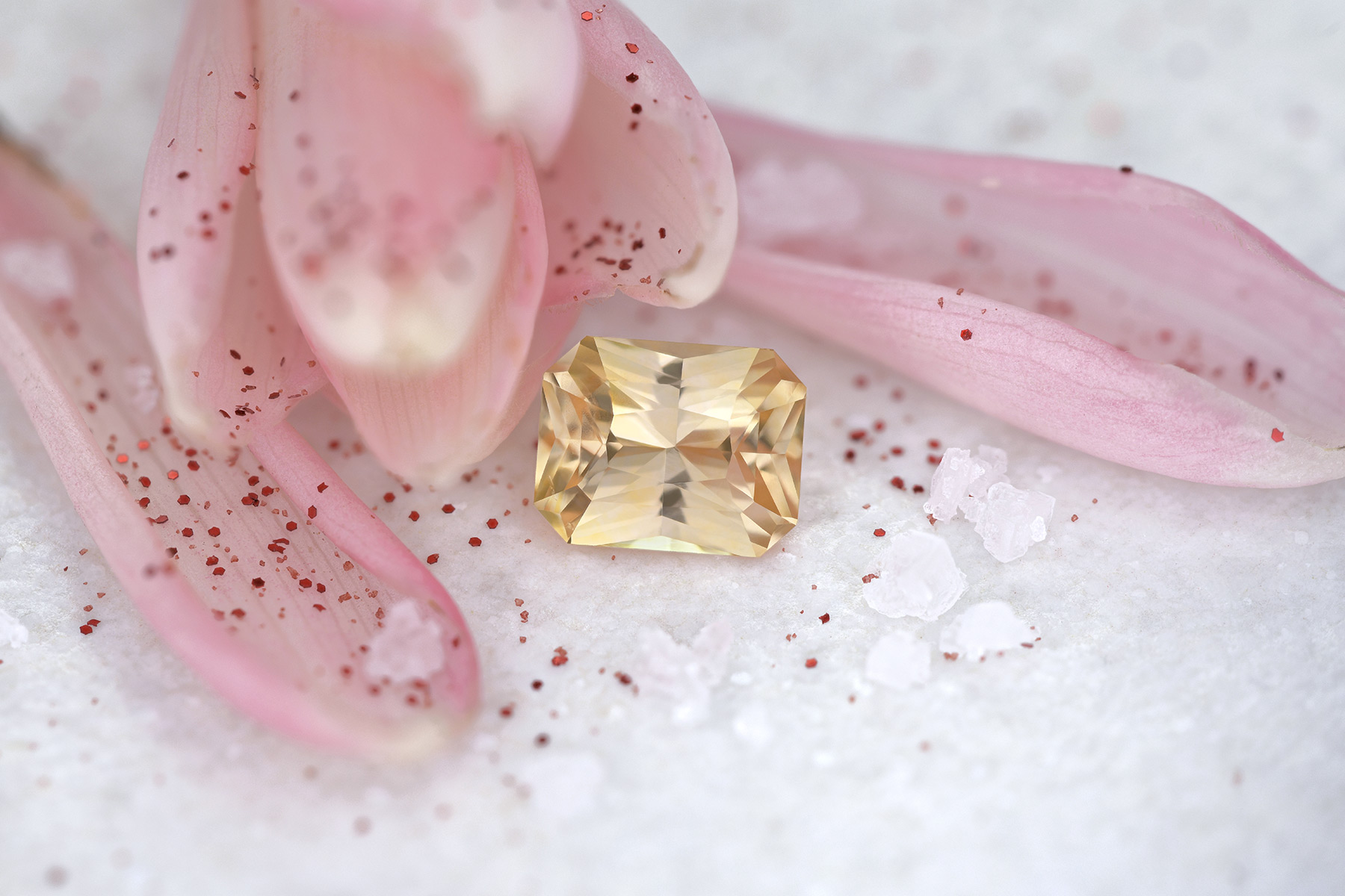 A soft yellow sapphire with orange flashes in the corners. Looks mellow and beautiful.