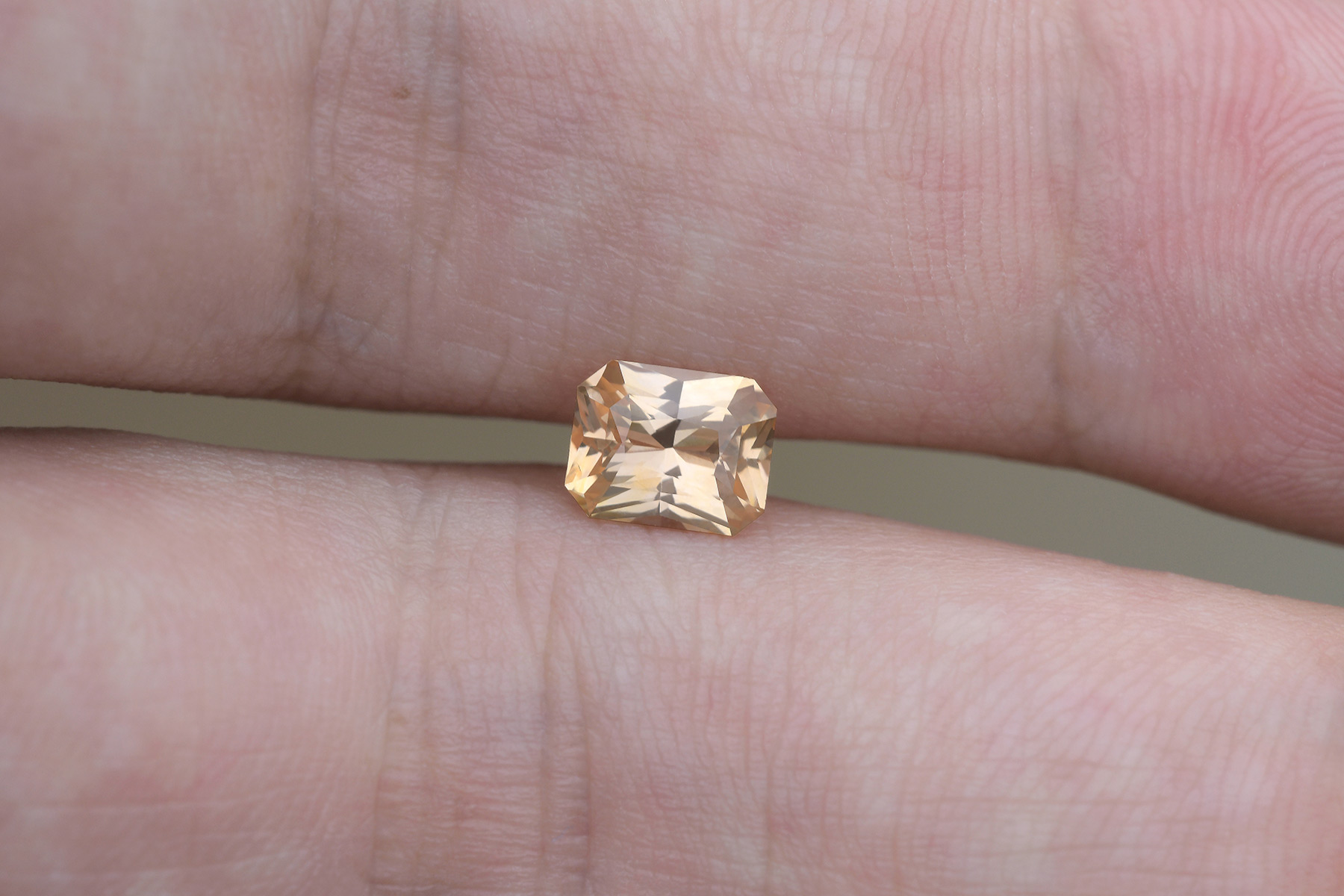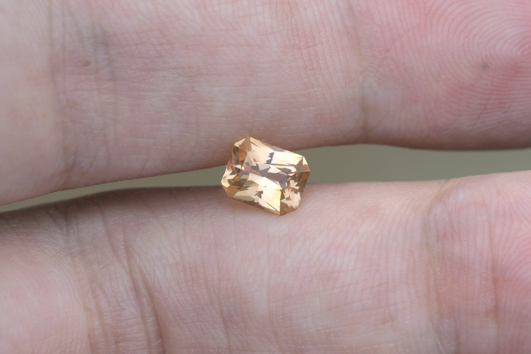 In incandescent light, it gains a strong orange tint which mixes with yellow to produce a stone the color of actual peaches.