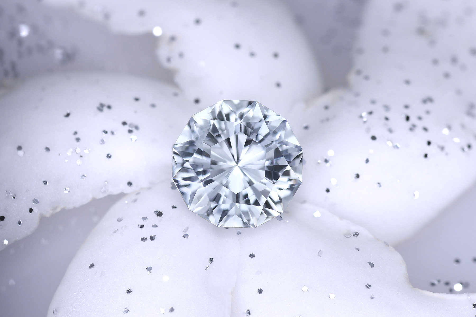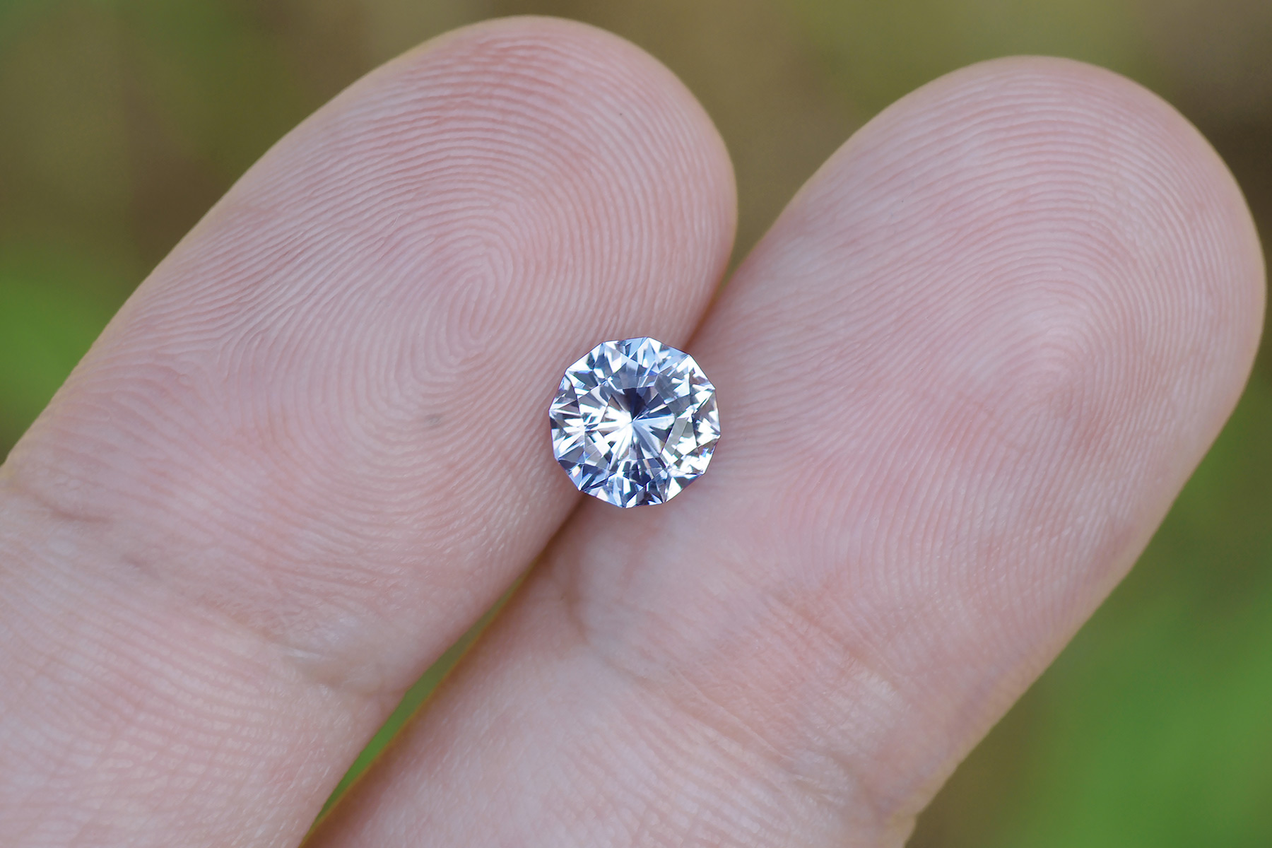 Cut from a 3.57 ct. piece of bluish tinted rough into an exceptionally bright, brilliant, sharp and pleasant looking cut with amazing light return.