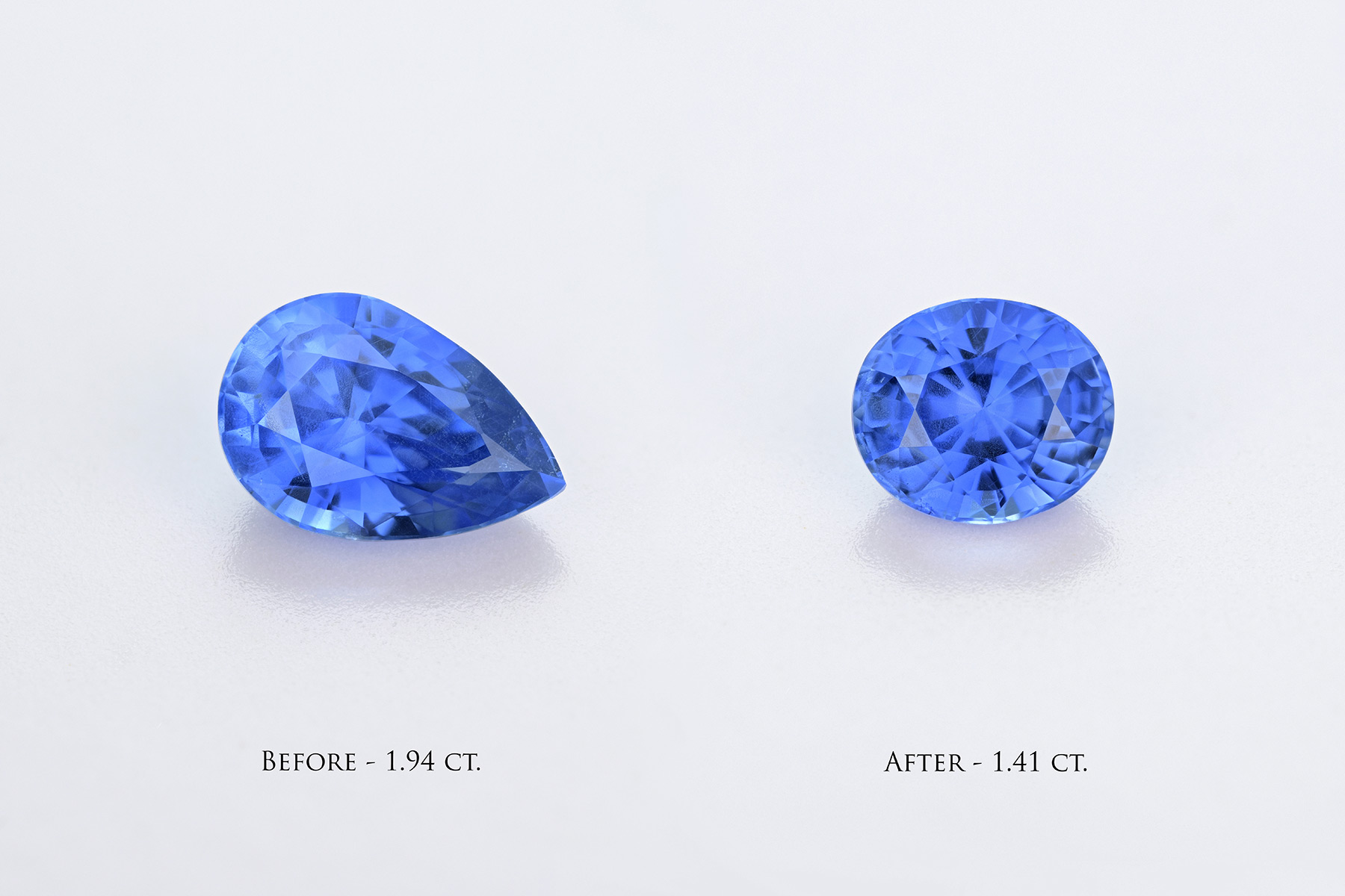 This stone was recut from a pear-shaped blue of 1.94 carats that just wouldn’t light up no matter what.