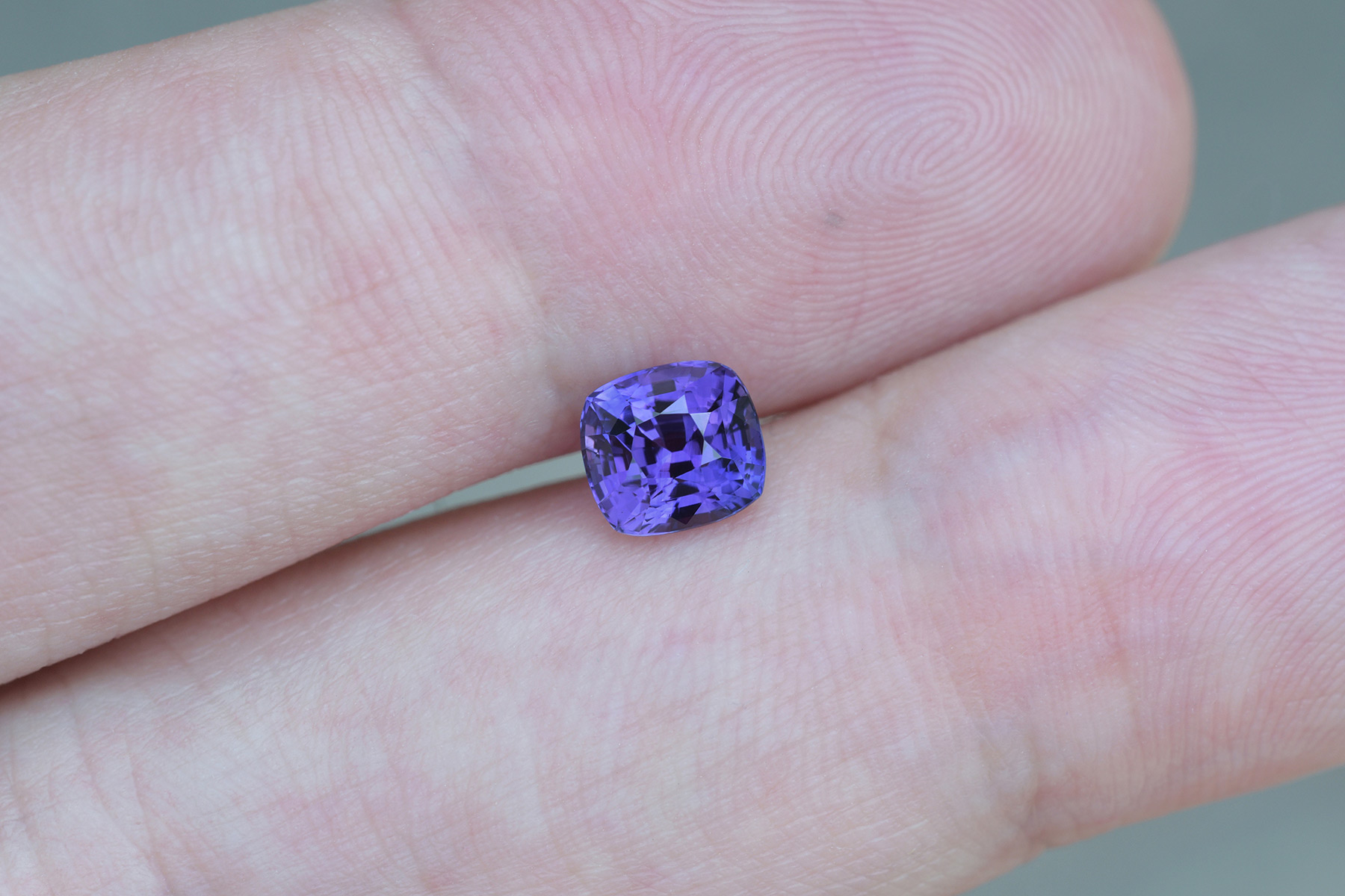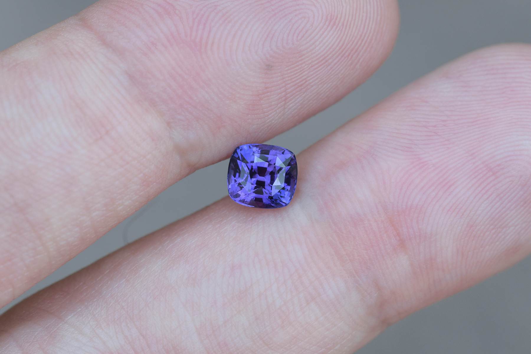 Purple sapphires almost always look drab, dull, overly dark, or have undesirable greyish or brownish undertones that diminish their saturation. This stone has none of those issues – its main hue is unusually pure and velvety, modified only by a pleasant indigo undertone that matches the main body color and works beautifully with it.