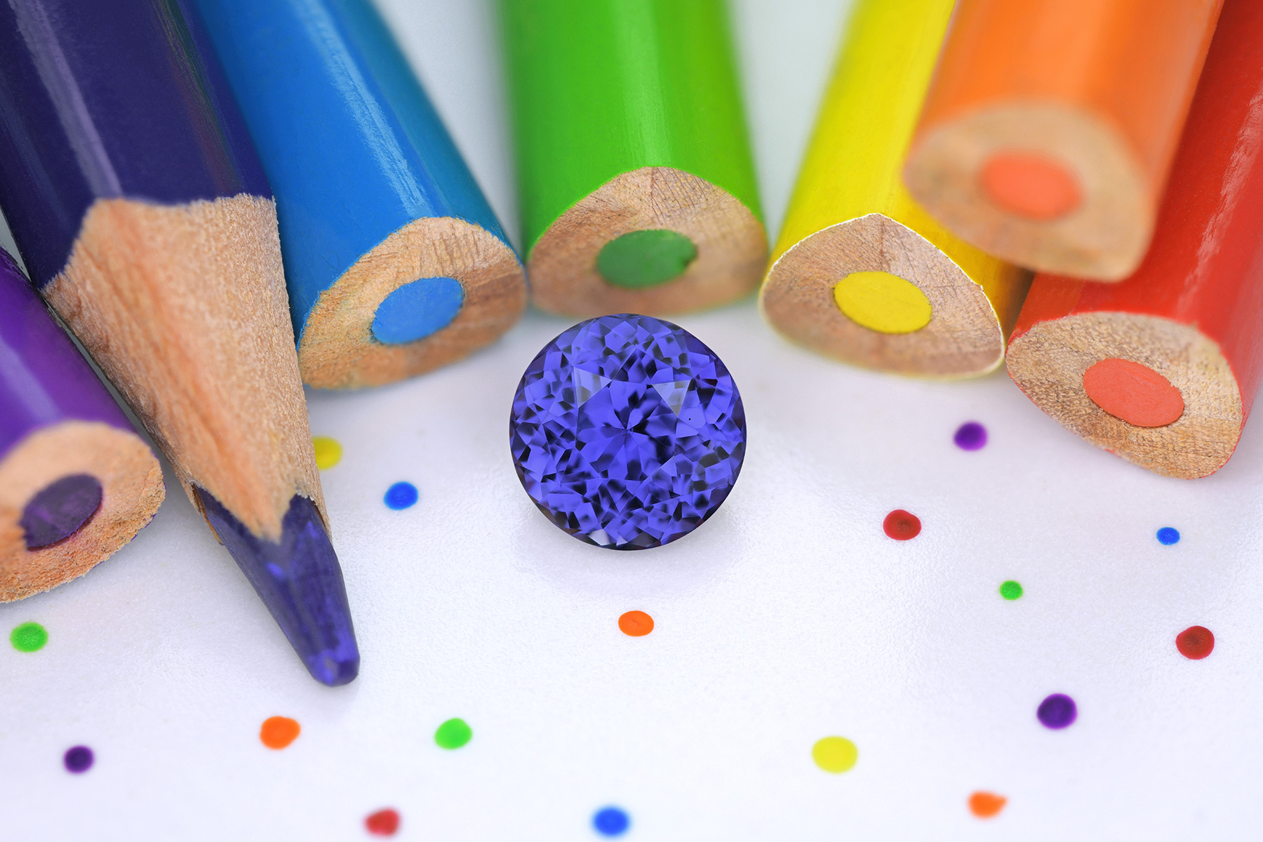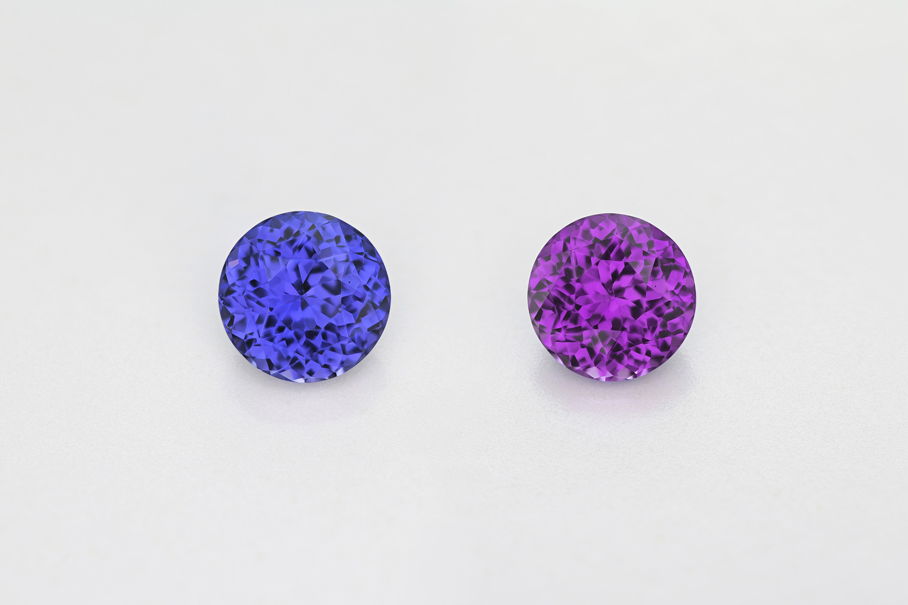 The stone ranges from intense indigo in diffused daylight outdoors, across bluish purple in diffused daylight indoors, to finally pure vivid purple in incandescent (2700K – 3000K) light.