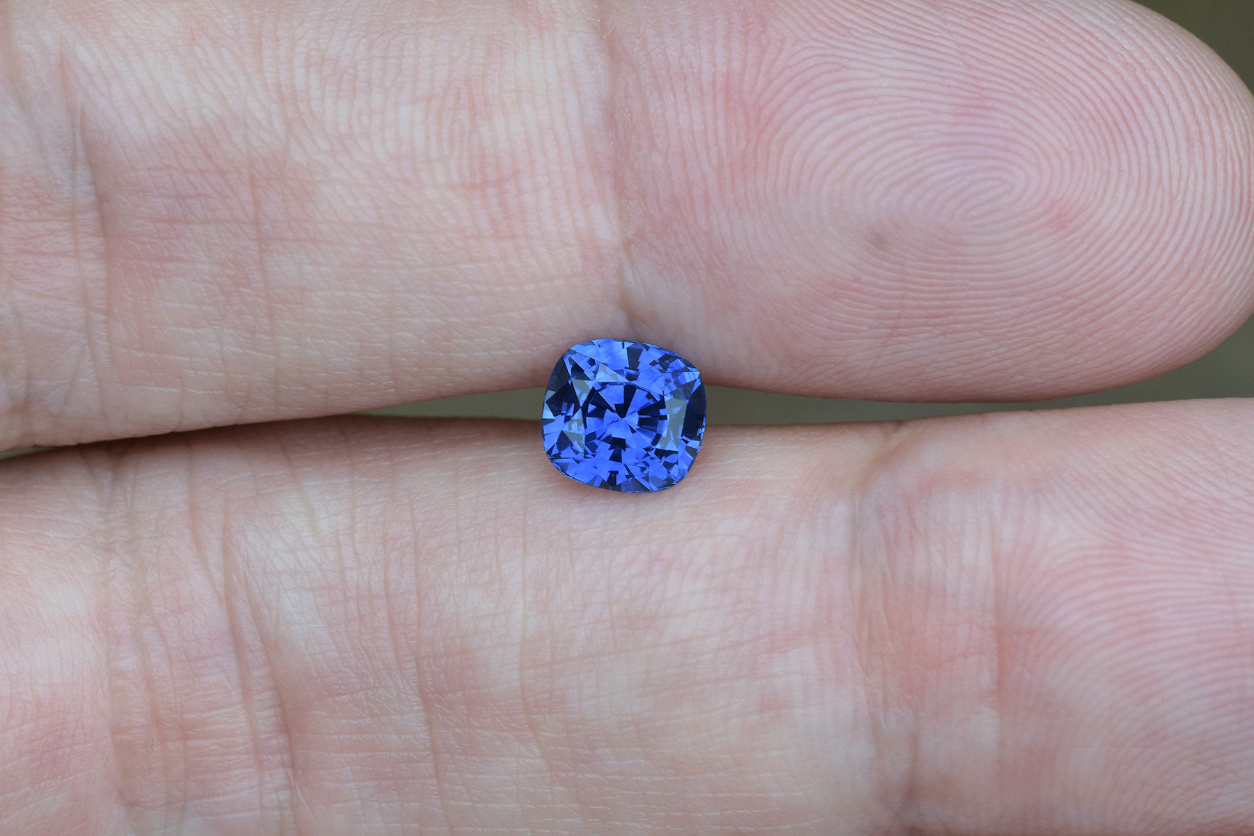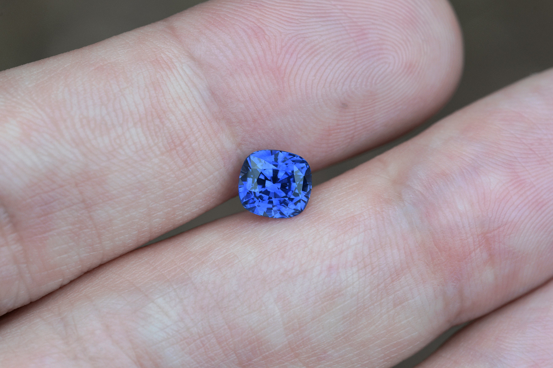 A beautiful blue sapphire recut from a cushion of nearly 2 carats into a pristine looking 1.70.