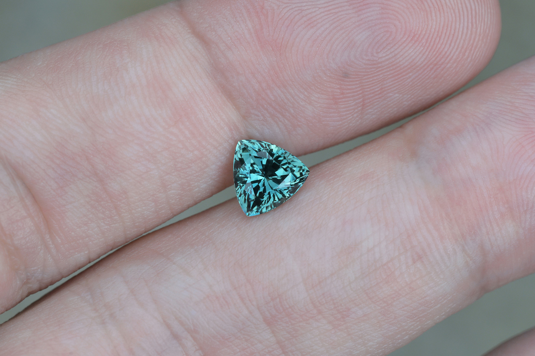 The stone is a paragon of teal corundum: equal parts blue and green, mixed together seamlessly and much more saturated than even the vast majority of heated teal sapphires (never mind the unheated ones).