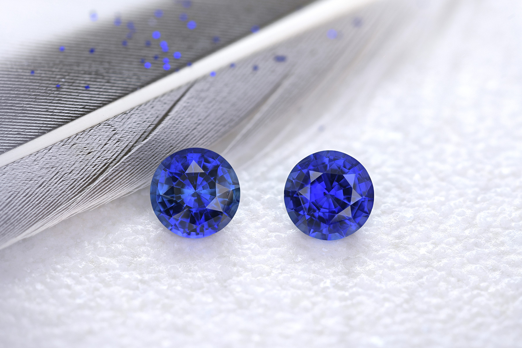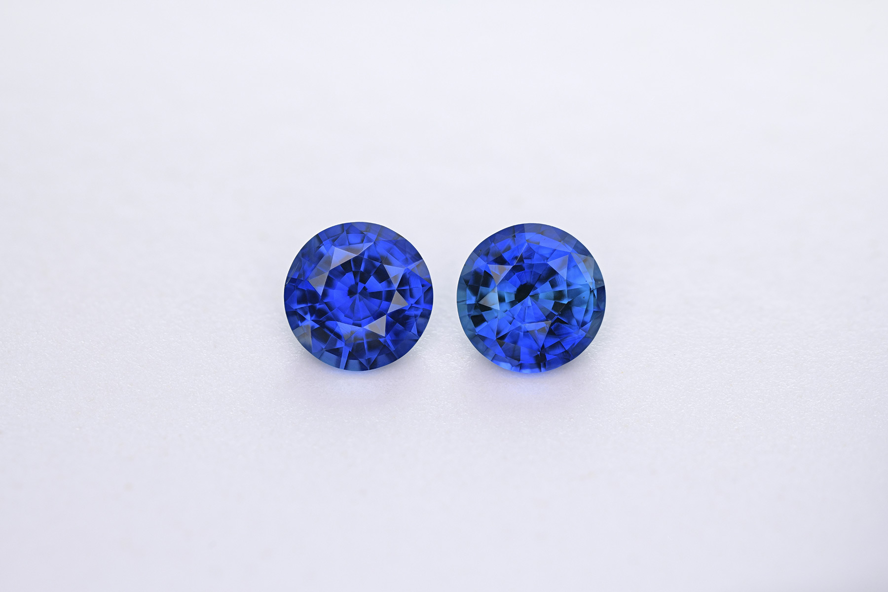 Single royal blue sapphire rounds are rare enough on their own, owing to the fact that sapphire rough isn’t usually suited to round shapes due to its elongated, tapered barrel-like crystal habit. Furthering its natural tendency to other cutting styles is the fact that most alluvial crystals get found in the form of small irregularly shaped pebbles, just fractions of the original crystal.