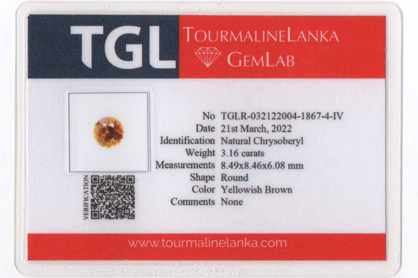 The stone is well cut and eye clean and unlike most brown chrysoberyls, isn't dull, dim or dark in the slightest.