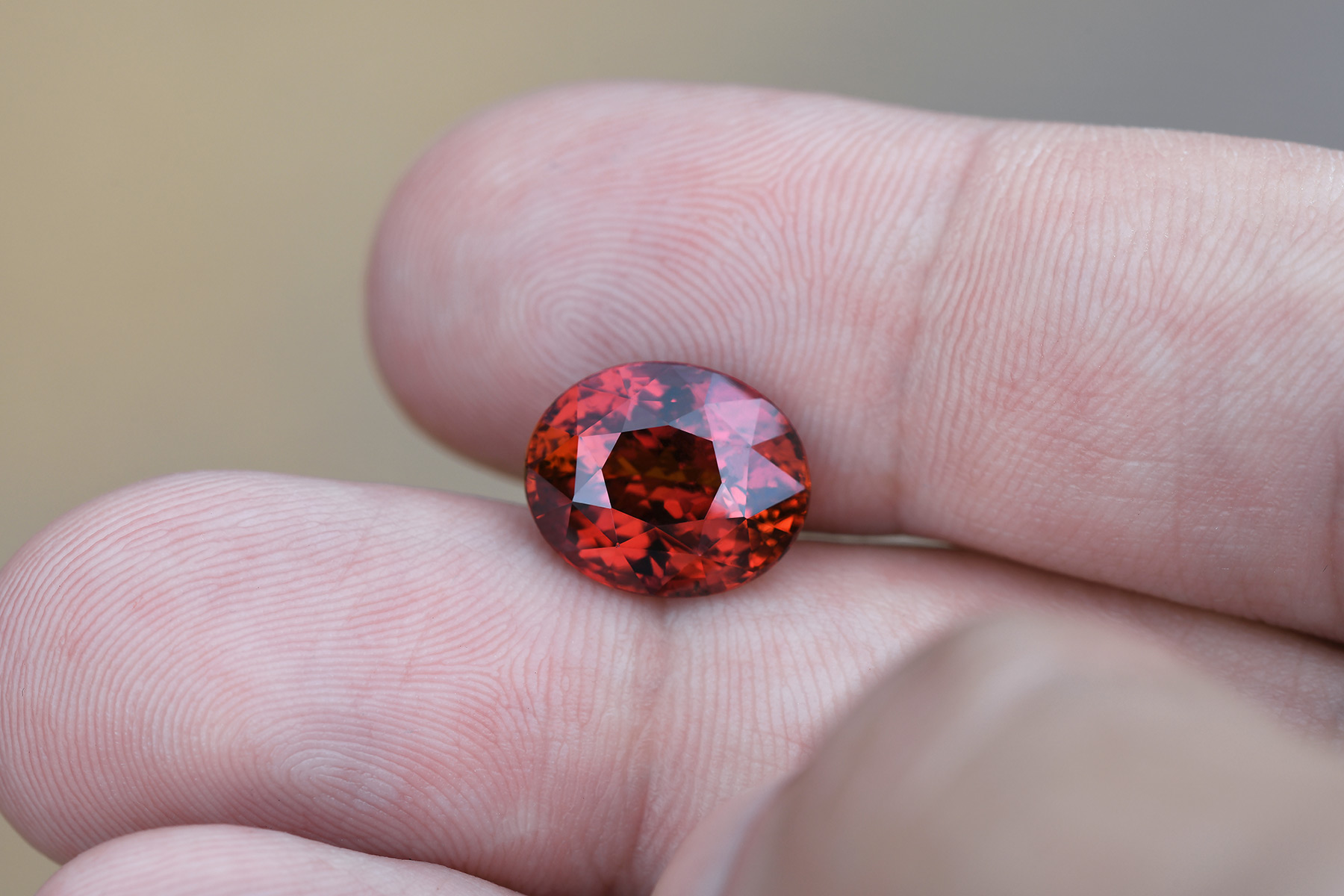 The brownish undertone is most apparent in incandescent light, and the least in full diffused daylight – and while that can mute the color a bit in certain settings like dimly lit incandescent environments, the stone still has plenty of reddish orange sparkle in all lighting.