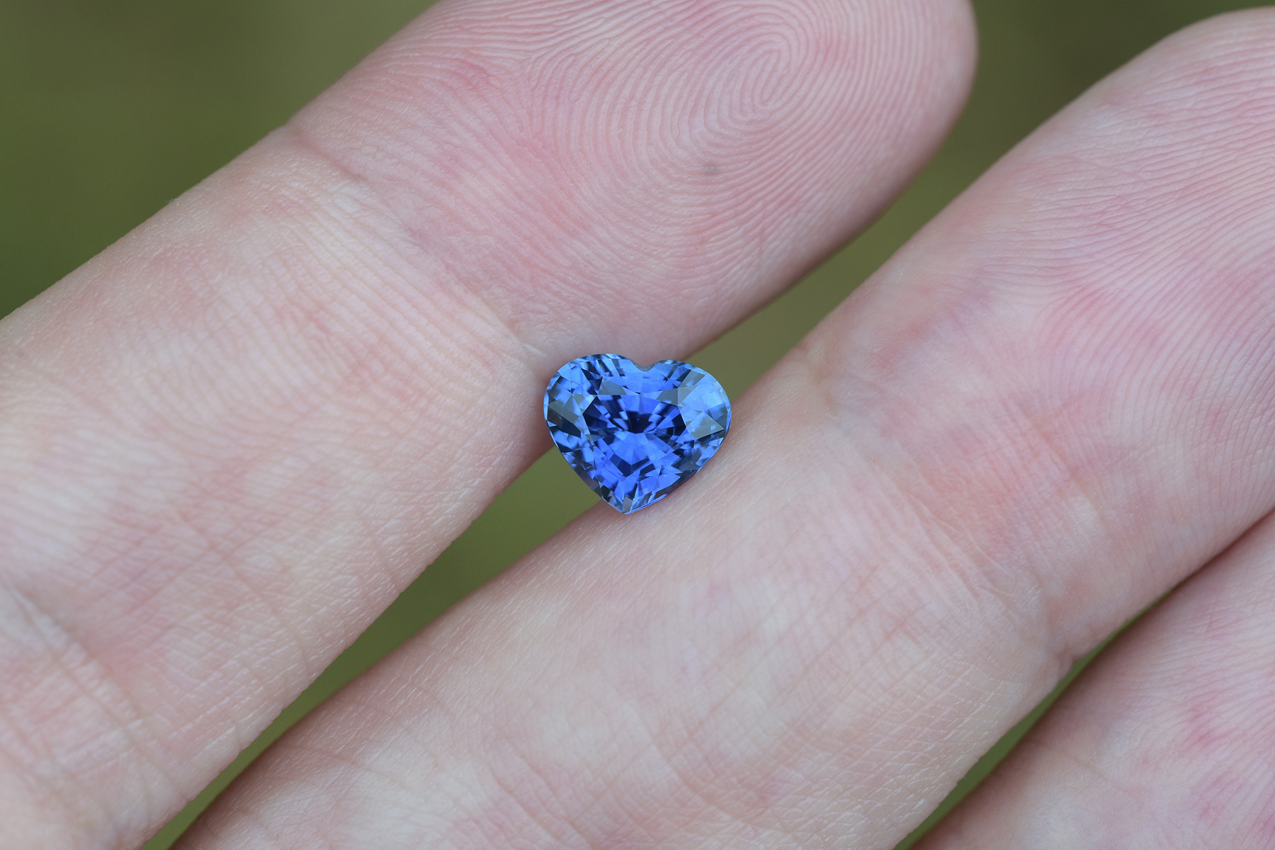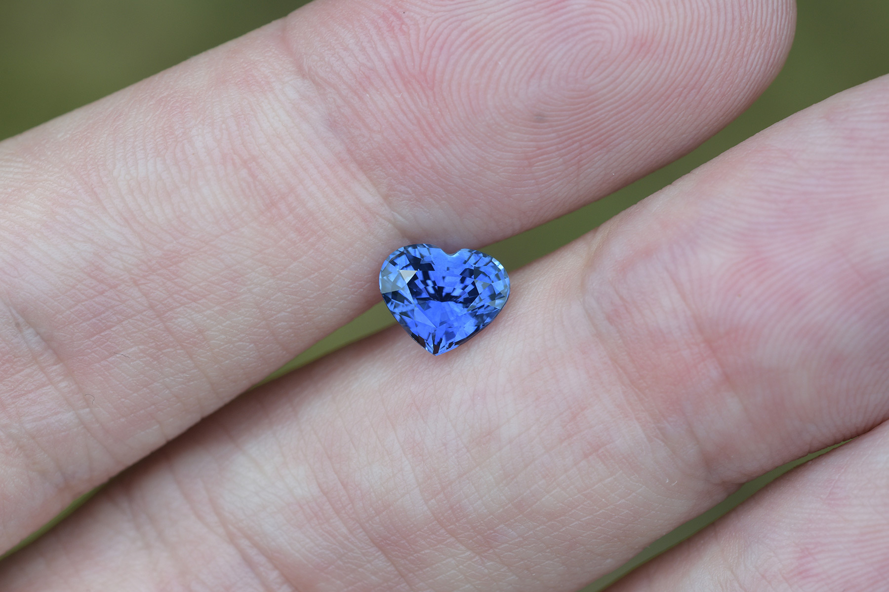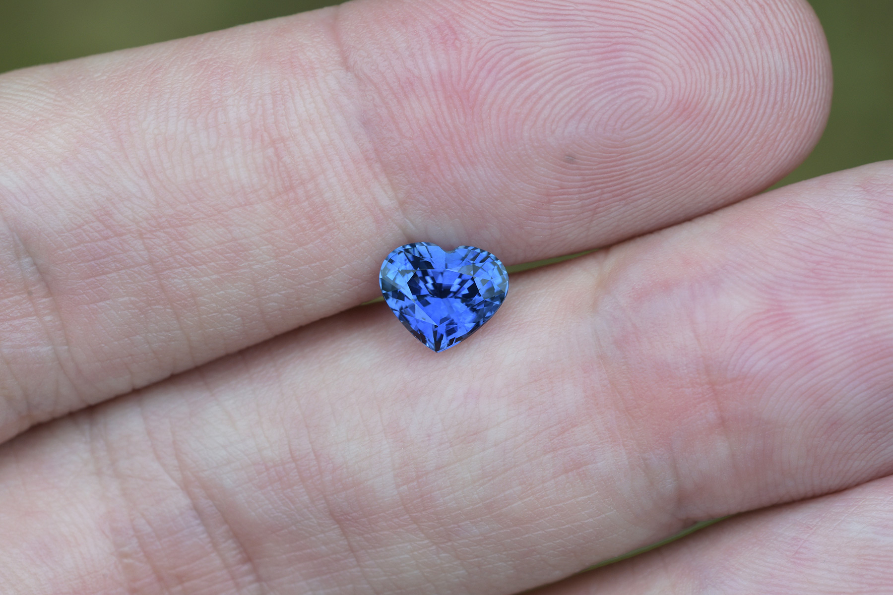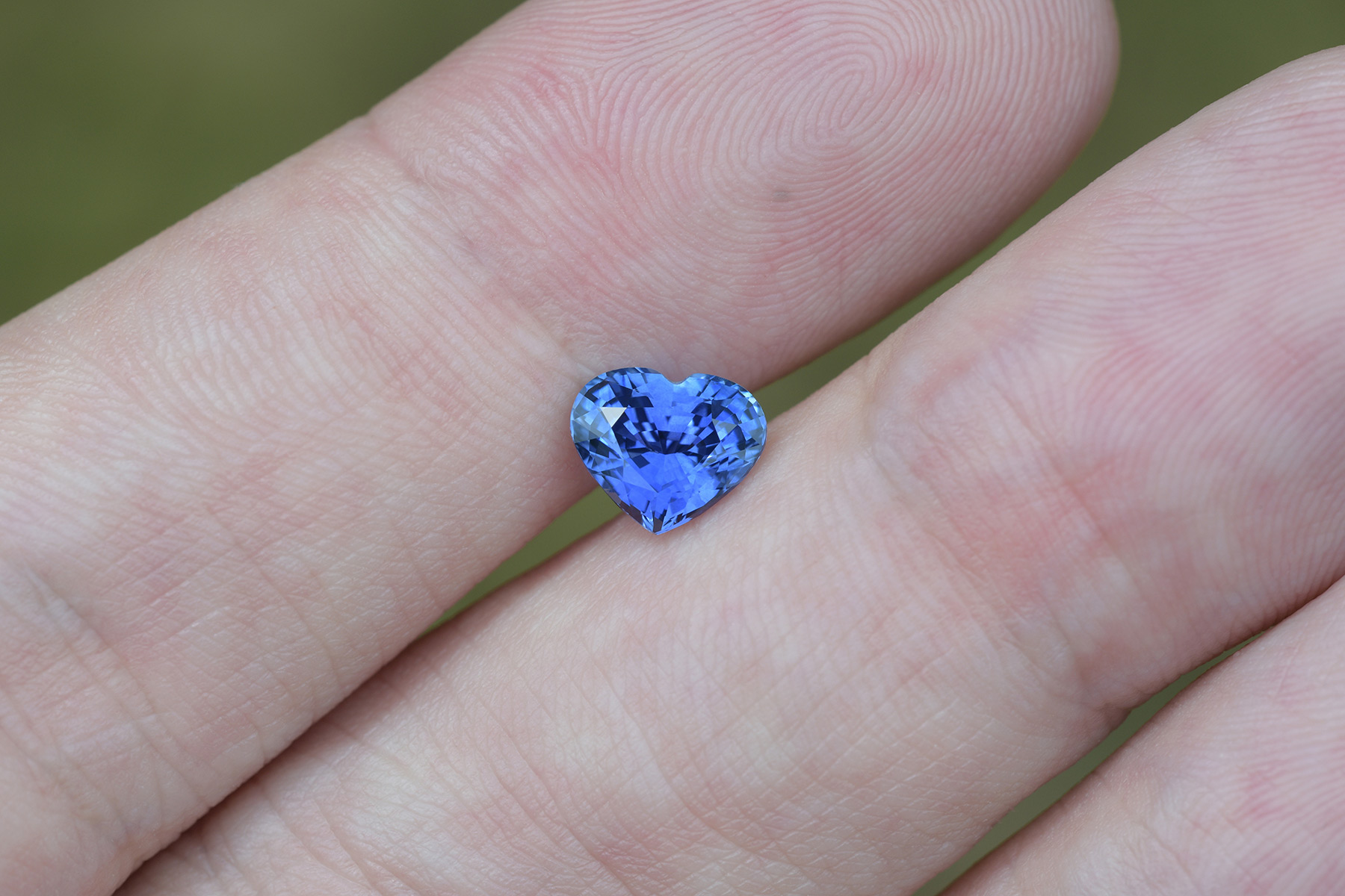 A vivid blue sapphire cut into a heart shape.