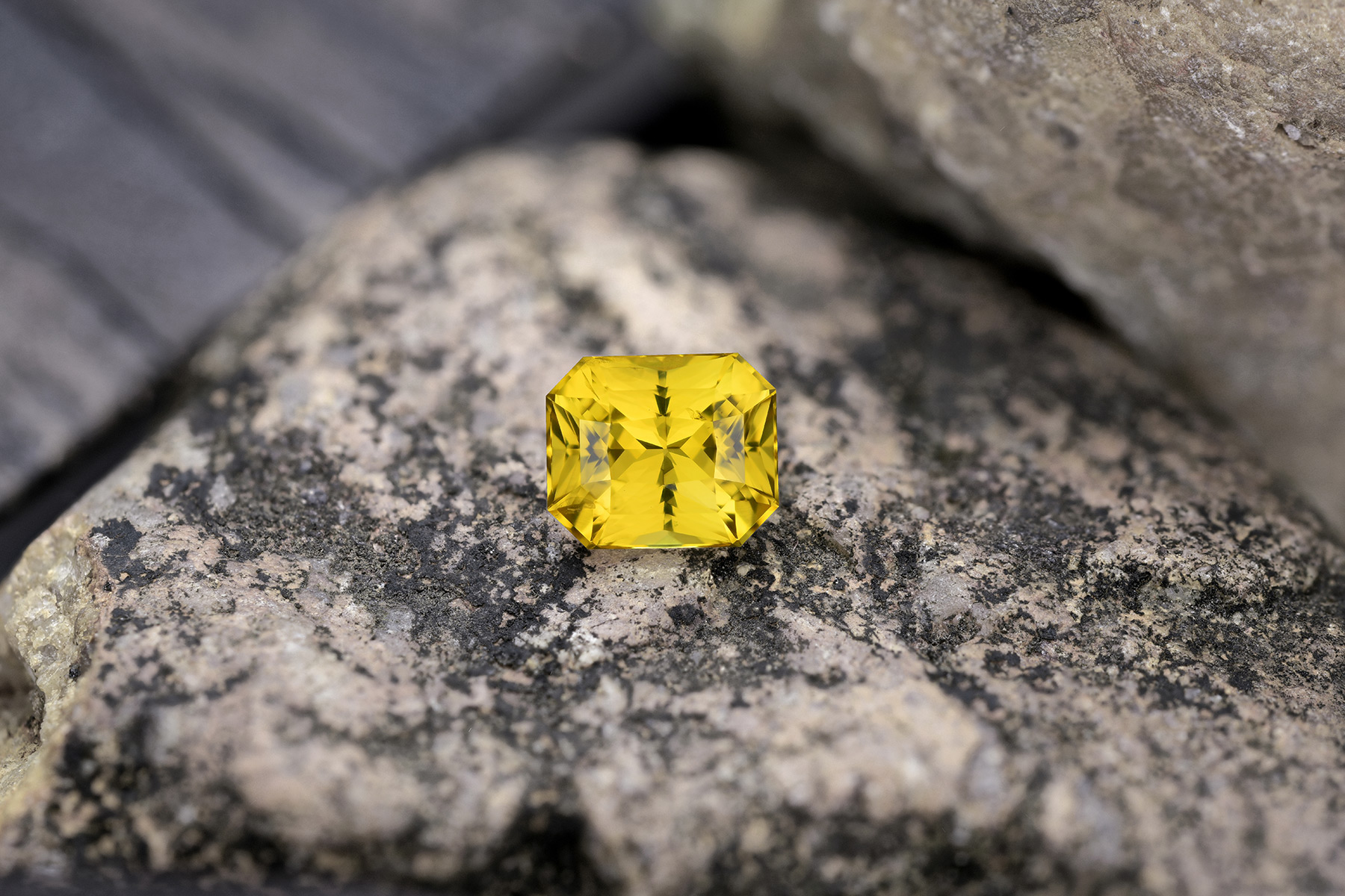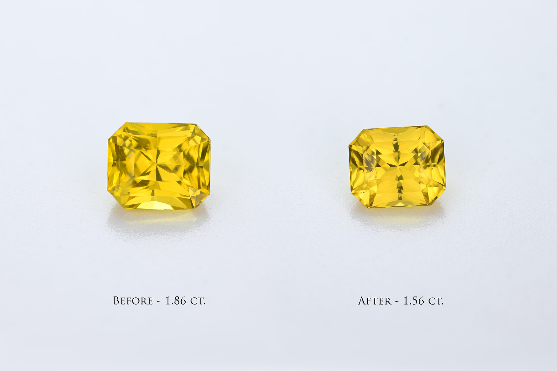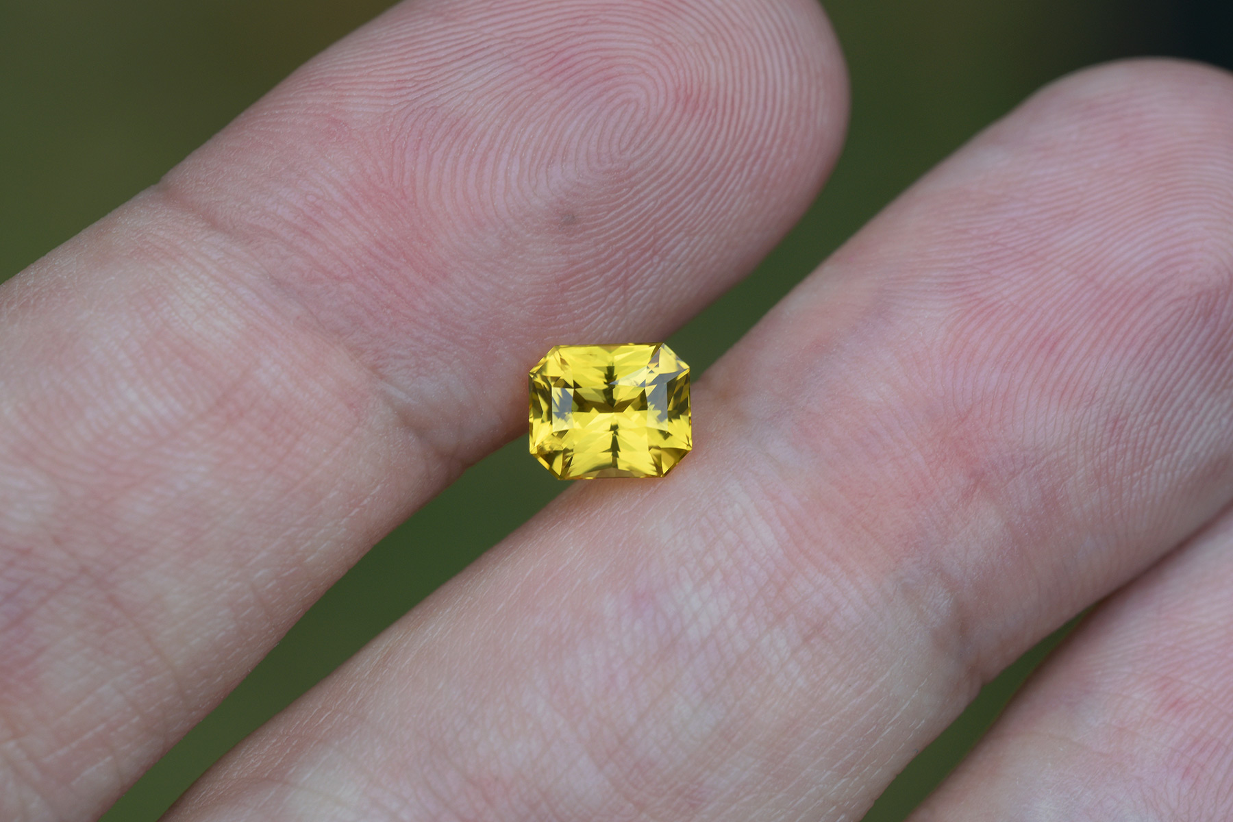 This stone’s actual brightness, brilliance and saturation didn’t translate into the photos well enough, but like all of our yellow sapphires, it has zero brown and plenty of saturation and brilliance in person.