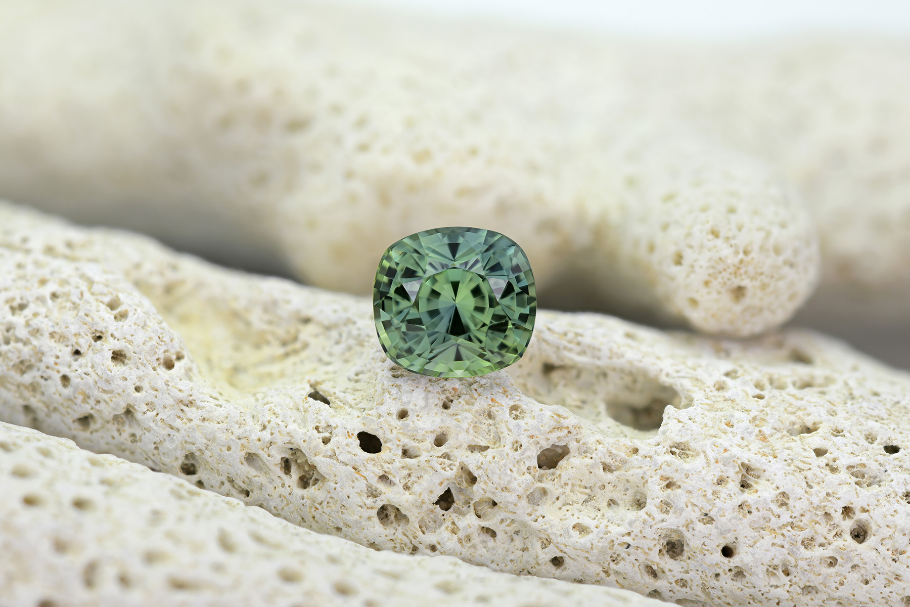 Green sapphires that simultaneously show a balanced tone, high saturation and good color evenness (for their kind) are very, very rare.