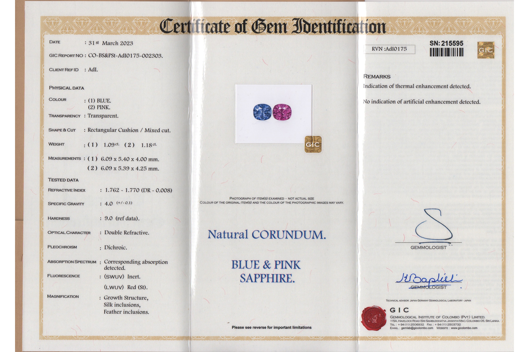 2.27 ct. (1.09 ct. & 1.18 ct.)
