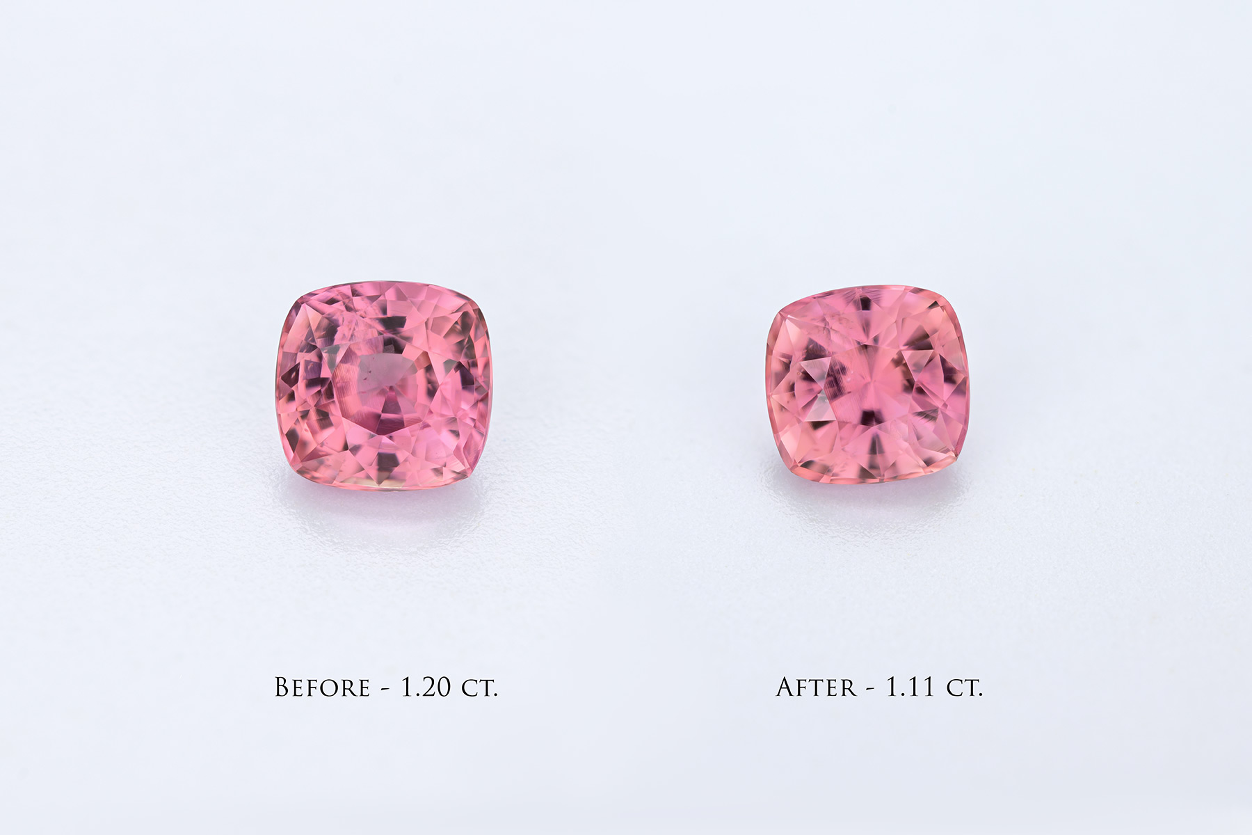 As almost everyone we work with knows, we seldom stock padparadschas because 99.99% of padparadschas on the market either have color issues that outright disqualify them from this category, or are included, or are impossible to recut into perfect cuts due to how badly they are always cut in order to preserve their colors.