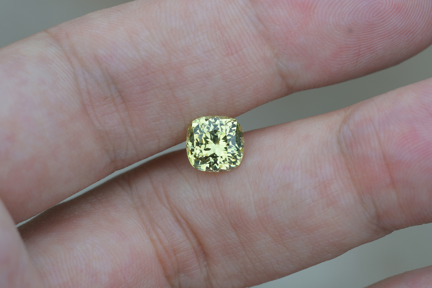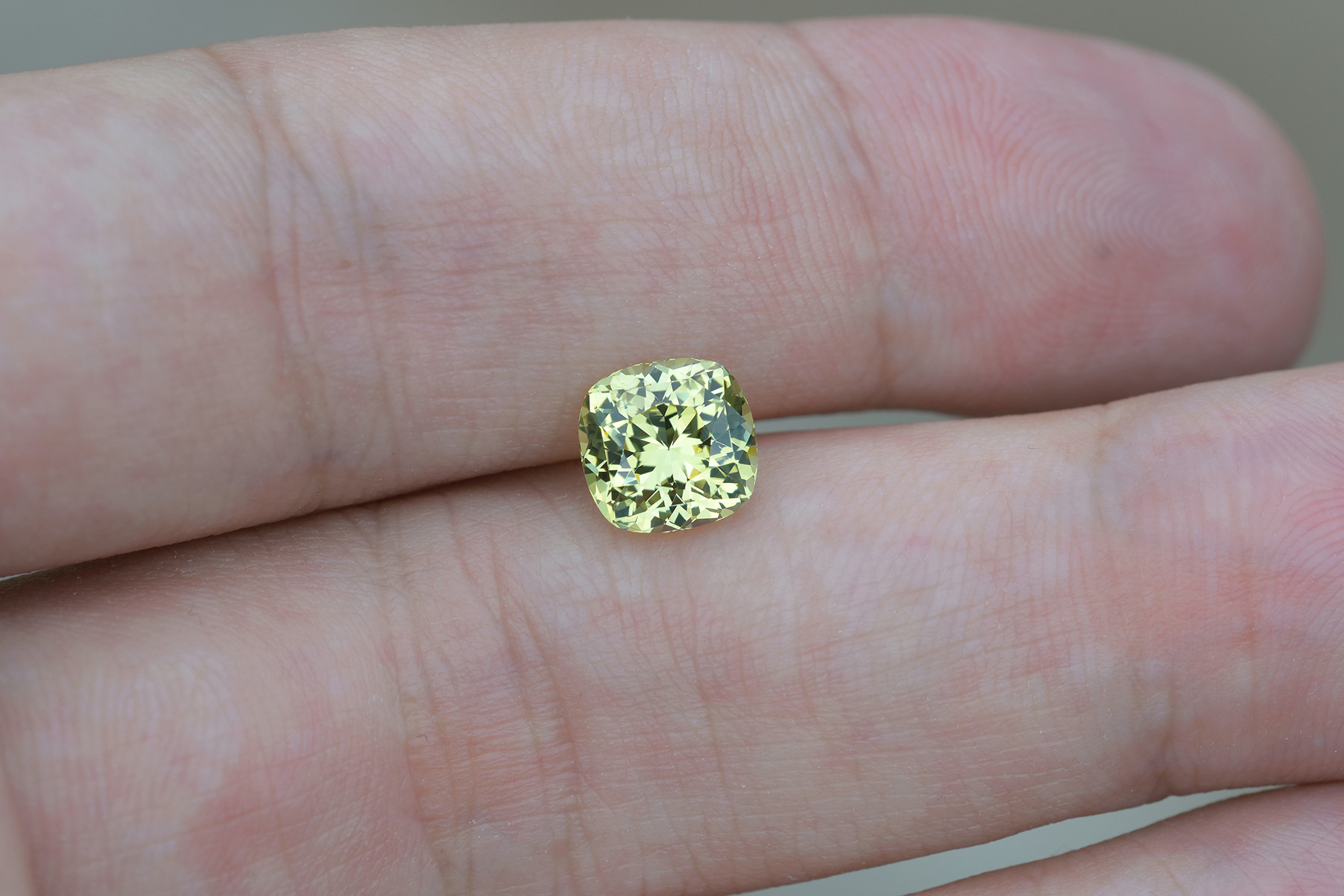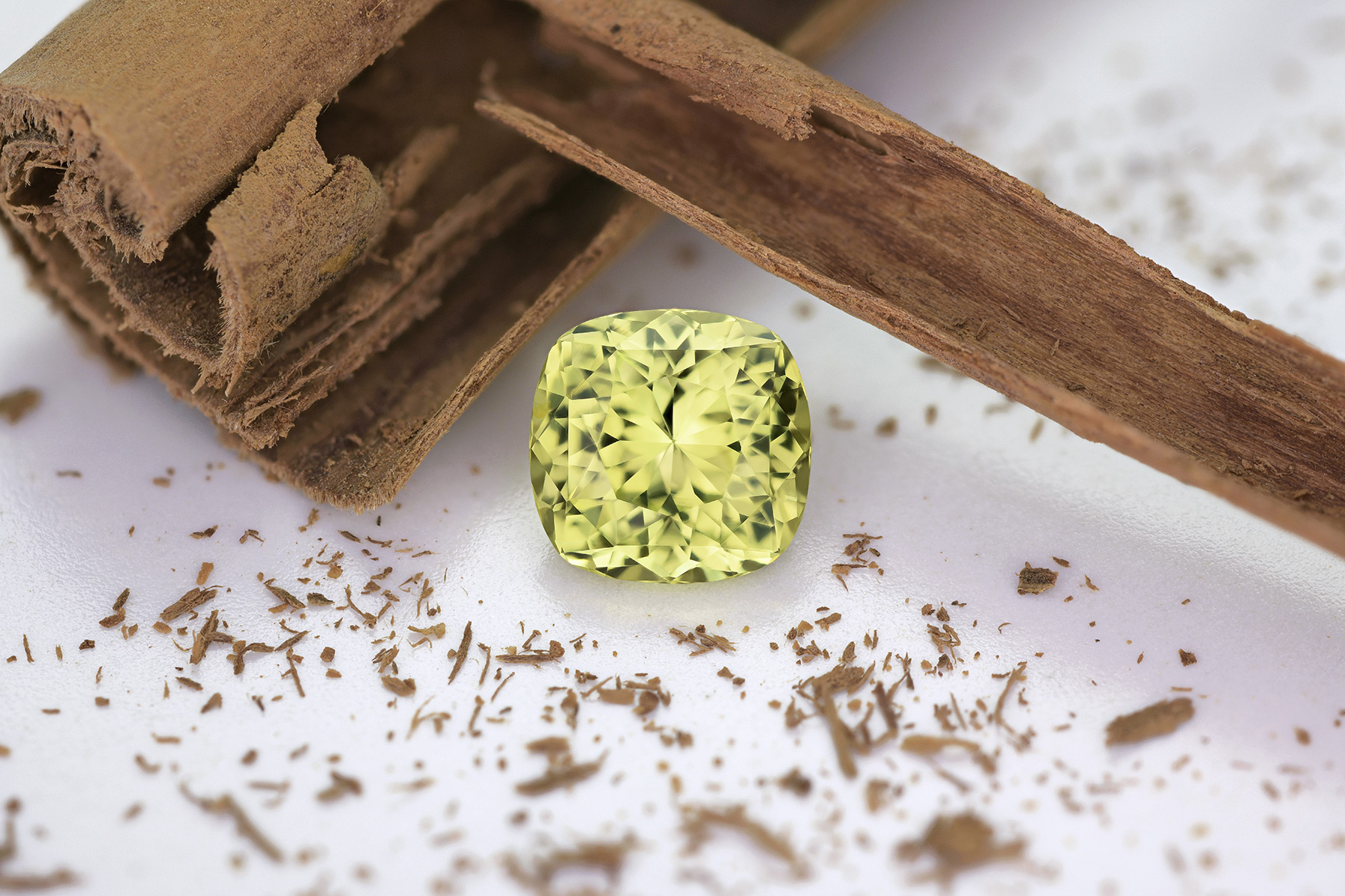 A bright chrysoberyl cut into a Portuguese cushion full of brilliance and life.