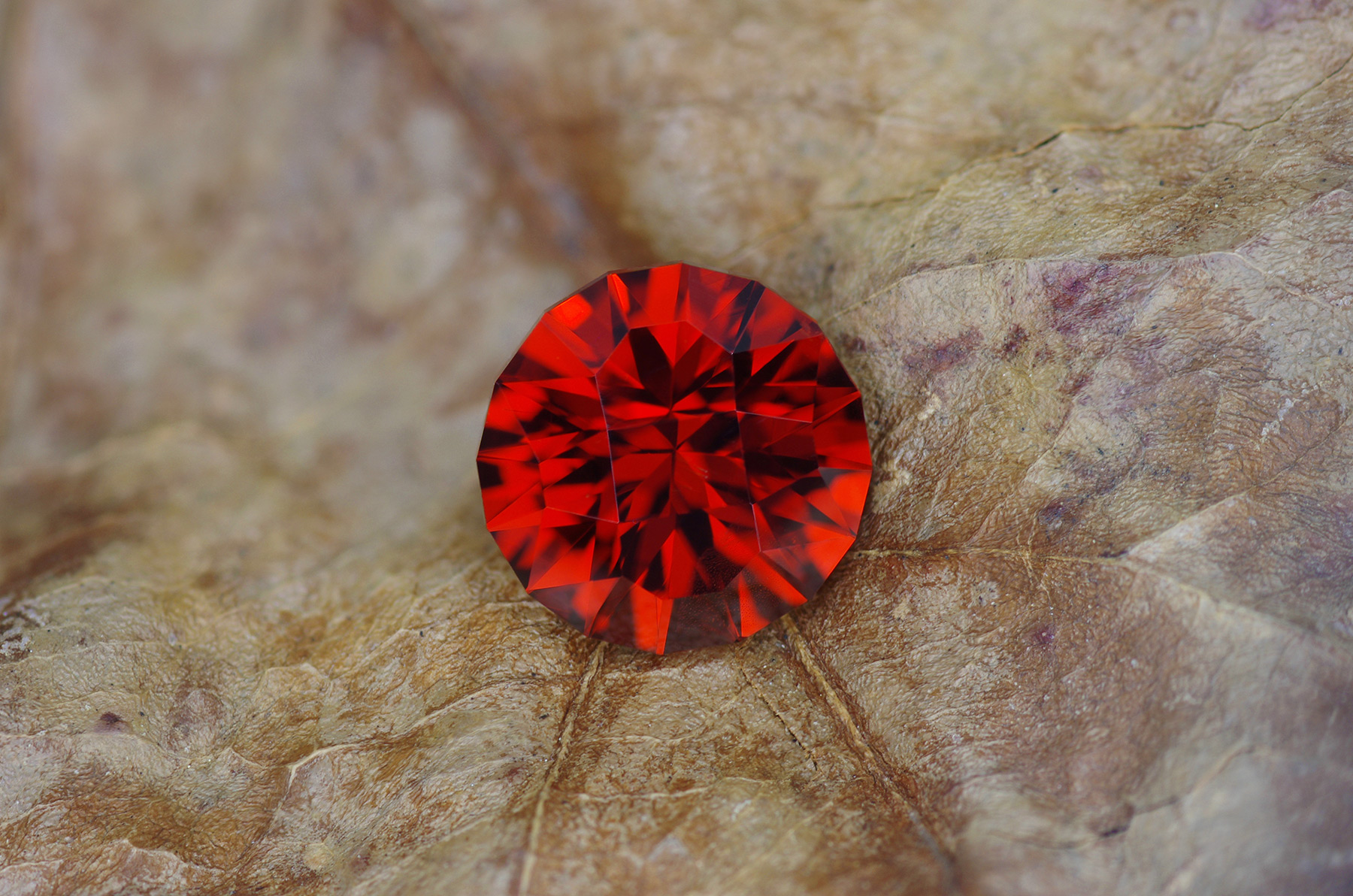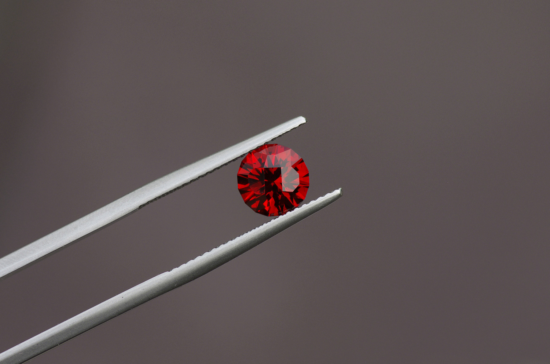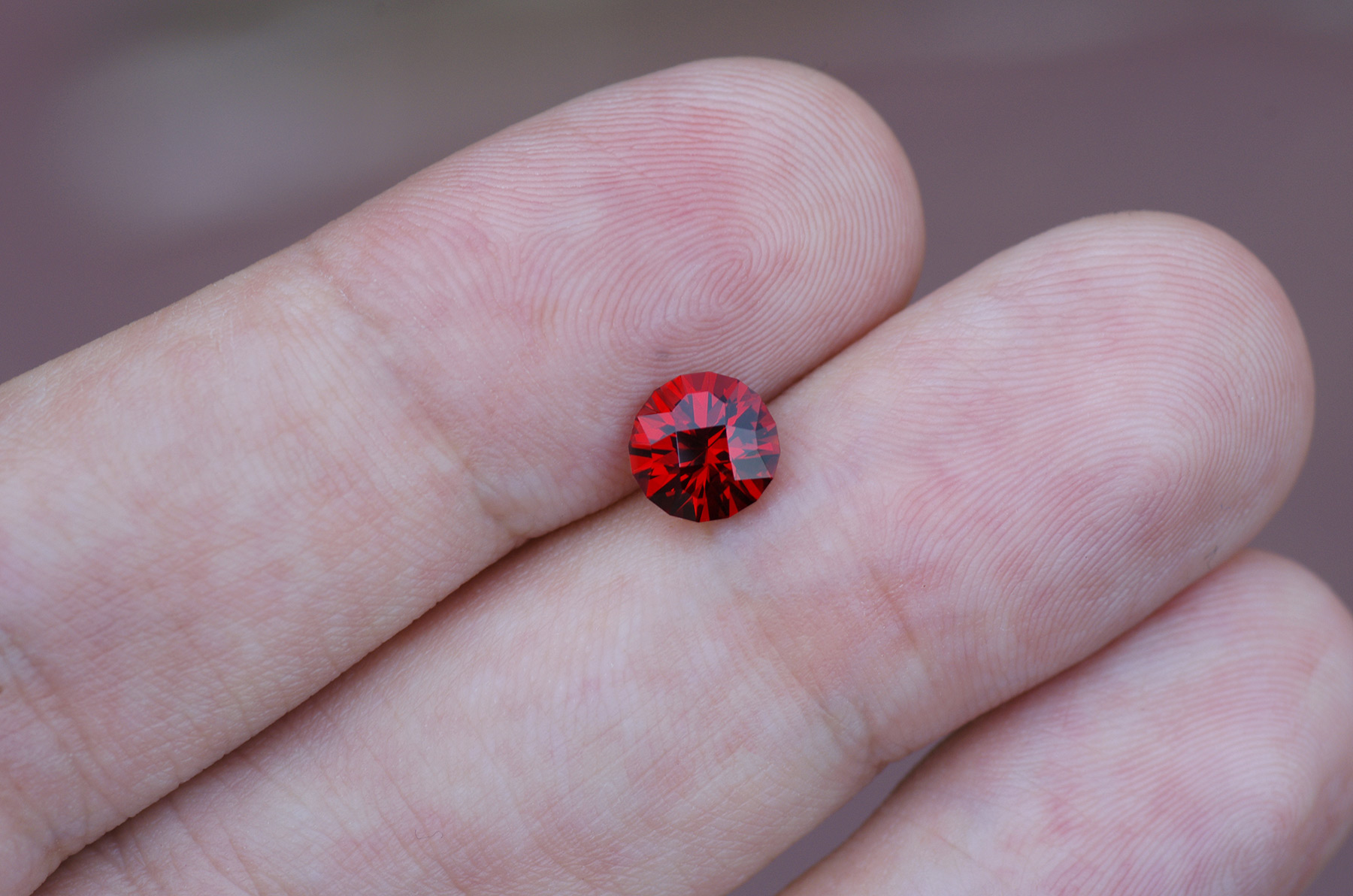 A sharp-looking, well cut red garnet made into a beautiful variant of the round brilliant cut.