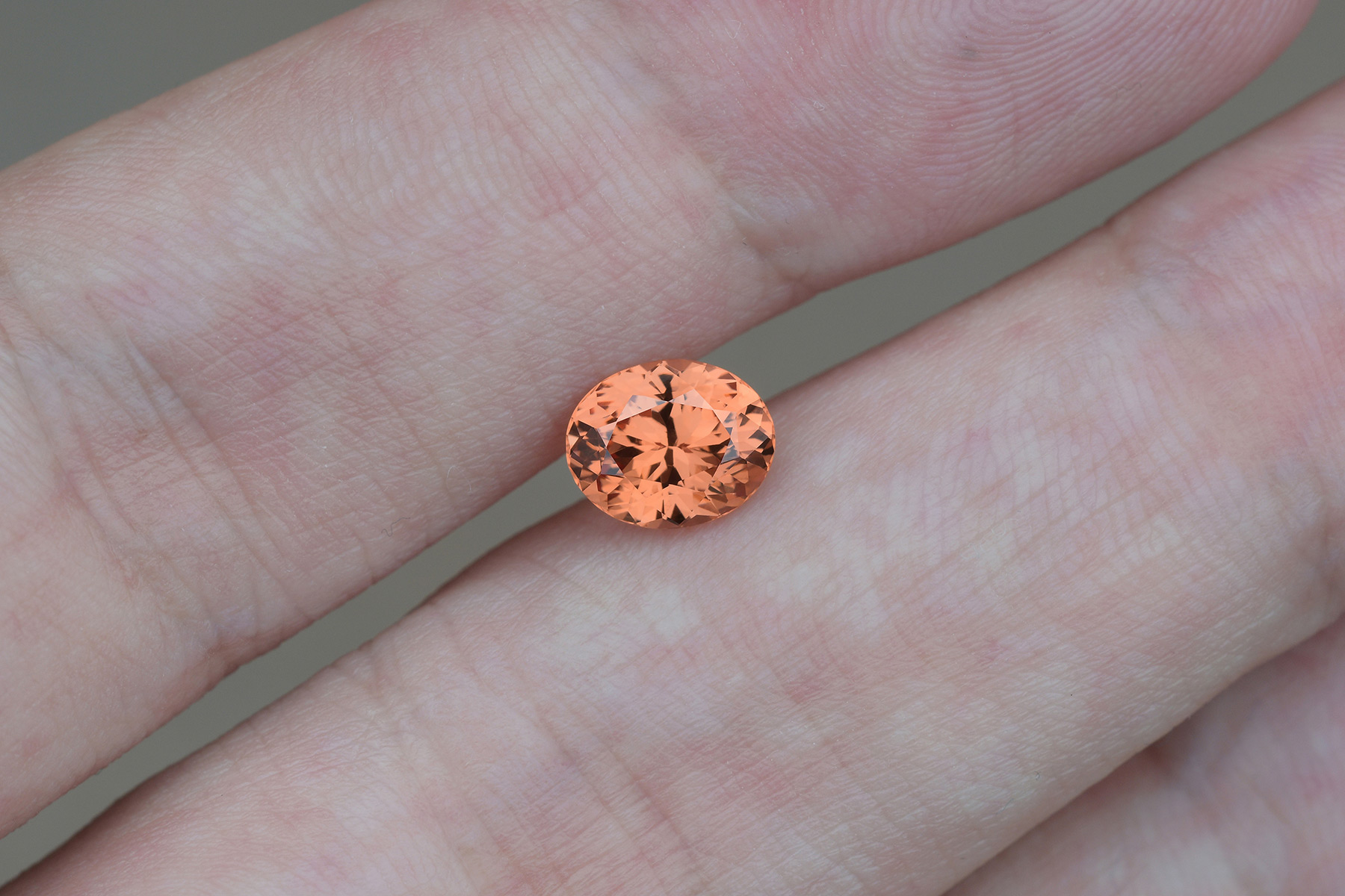 “Bright, peachy and unique” aptly describes this very well cut spessartite garnet from Mahenge, Tanzania.