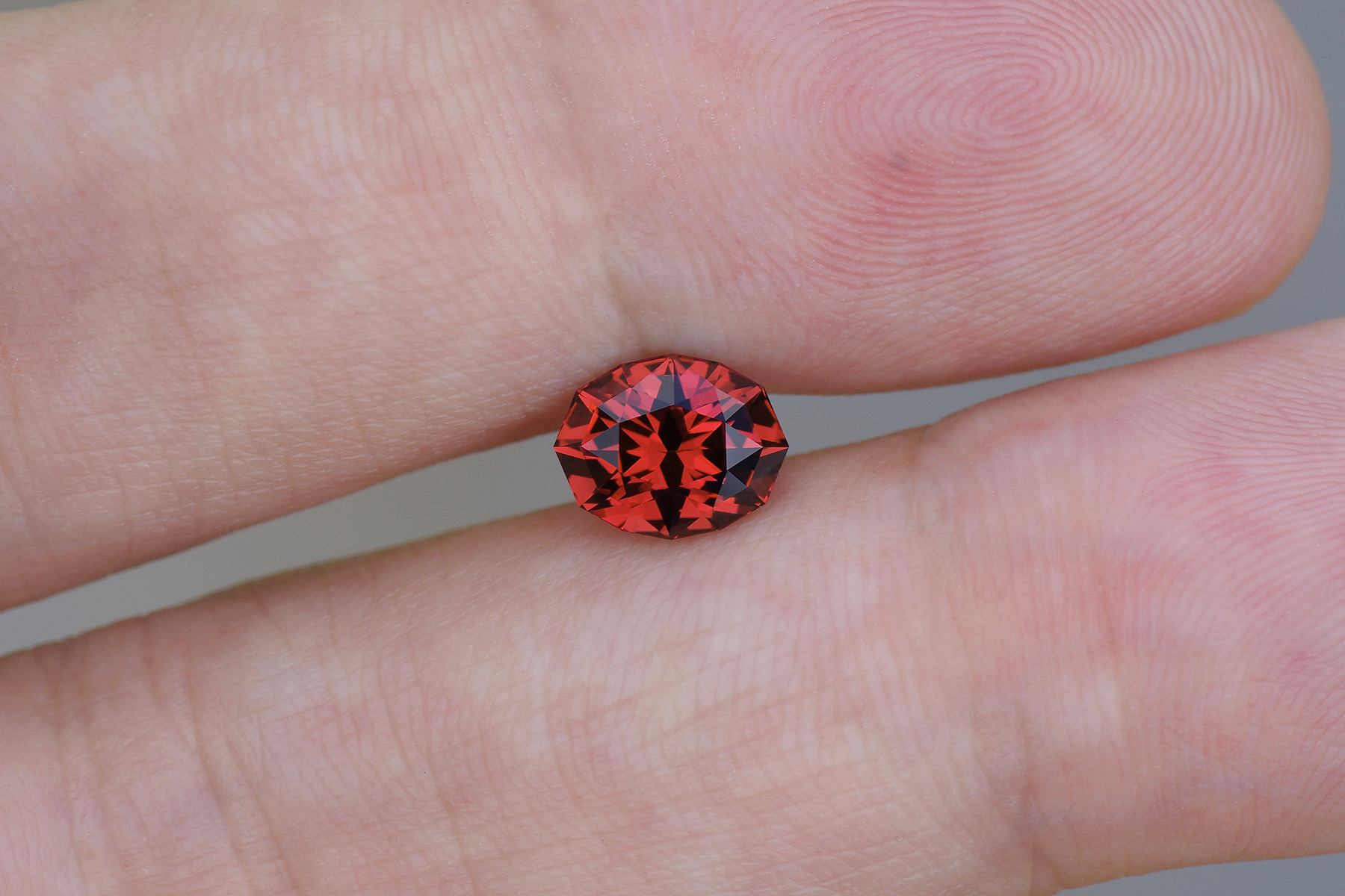 A very well cut red garnet, lustrous and bright thanks to the oval barion cut.